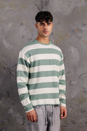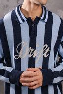 Men's “Drift” Striped Knit Polo Sweater – Navy Blue & Sky Blue 17% off