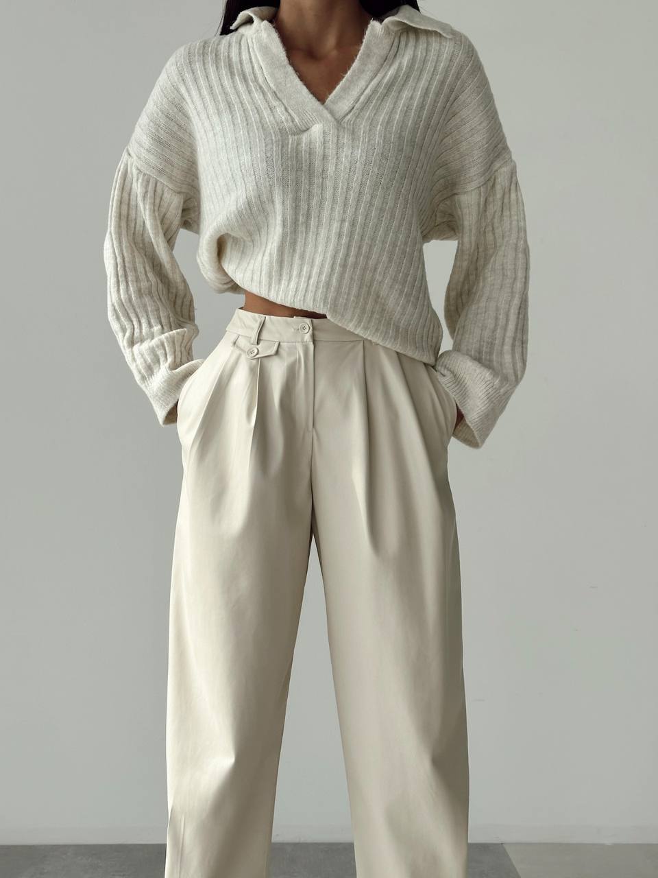 Women's Oversize V Neck Pullover In Beige
