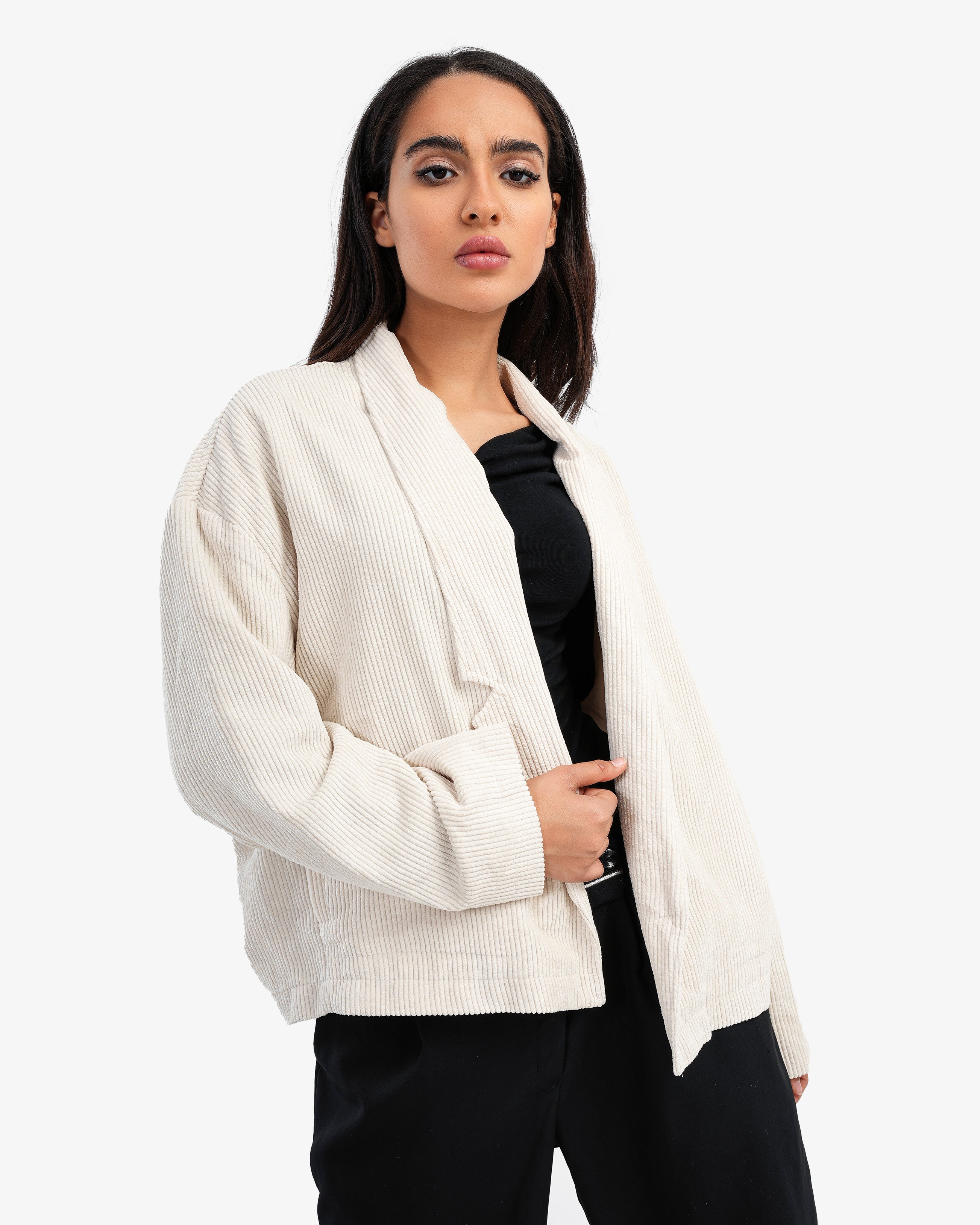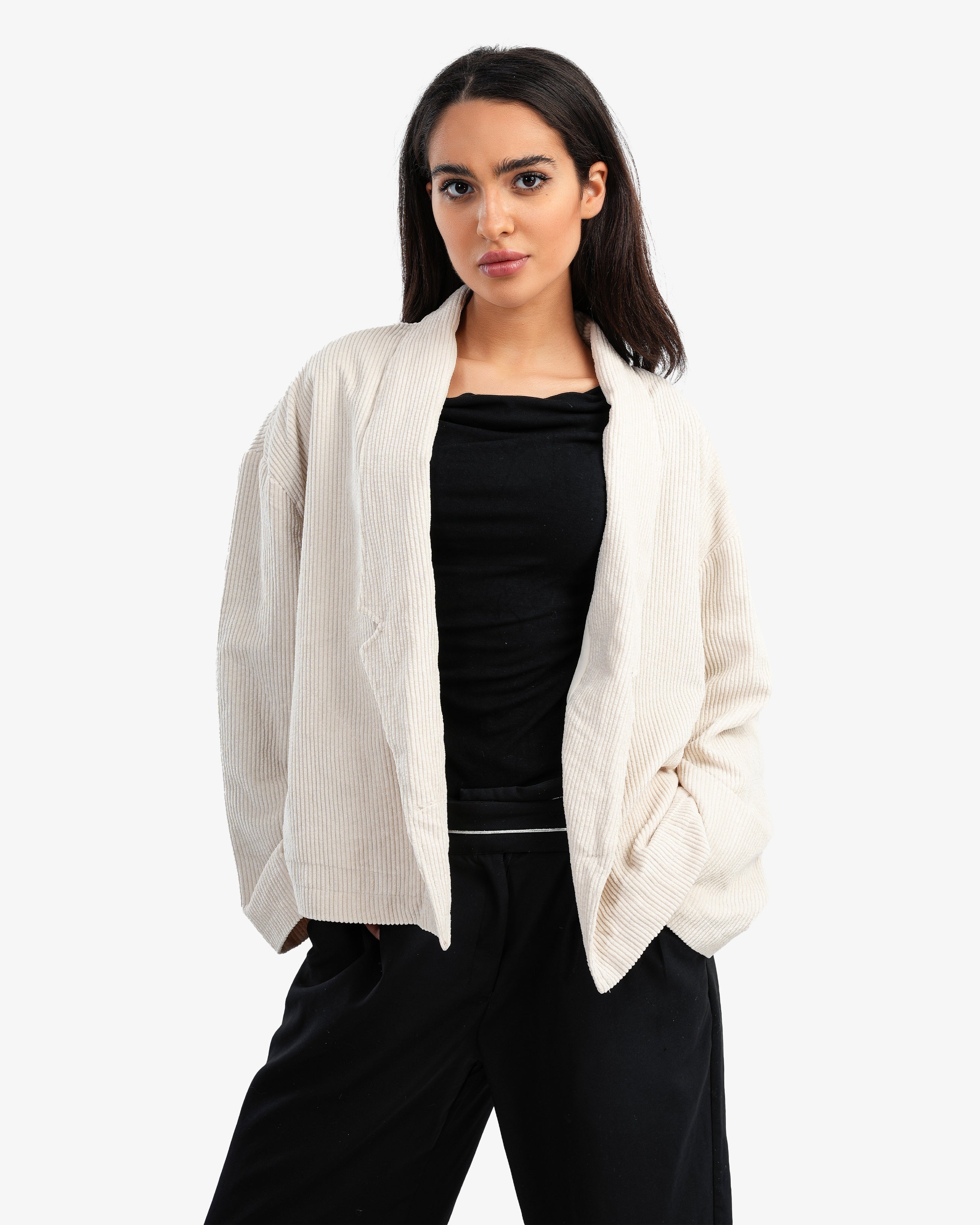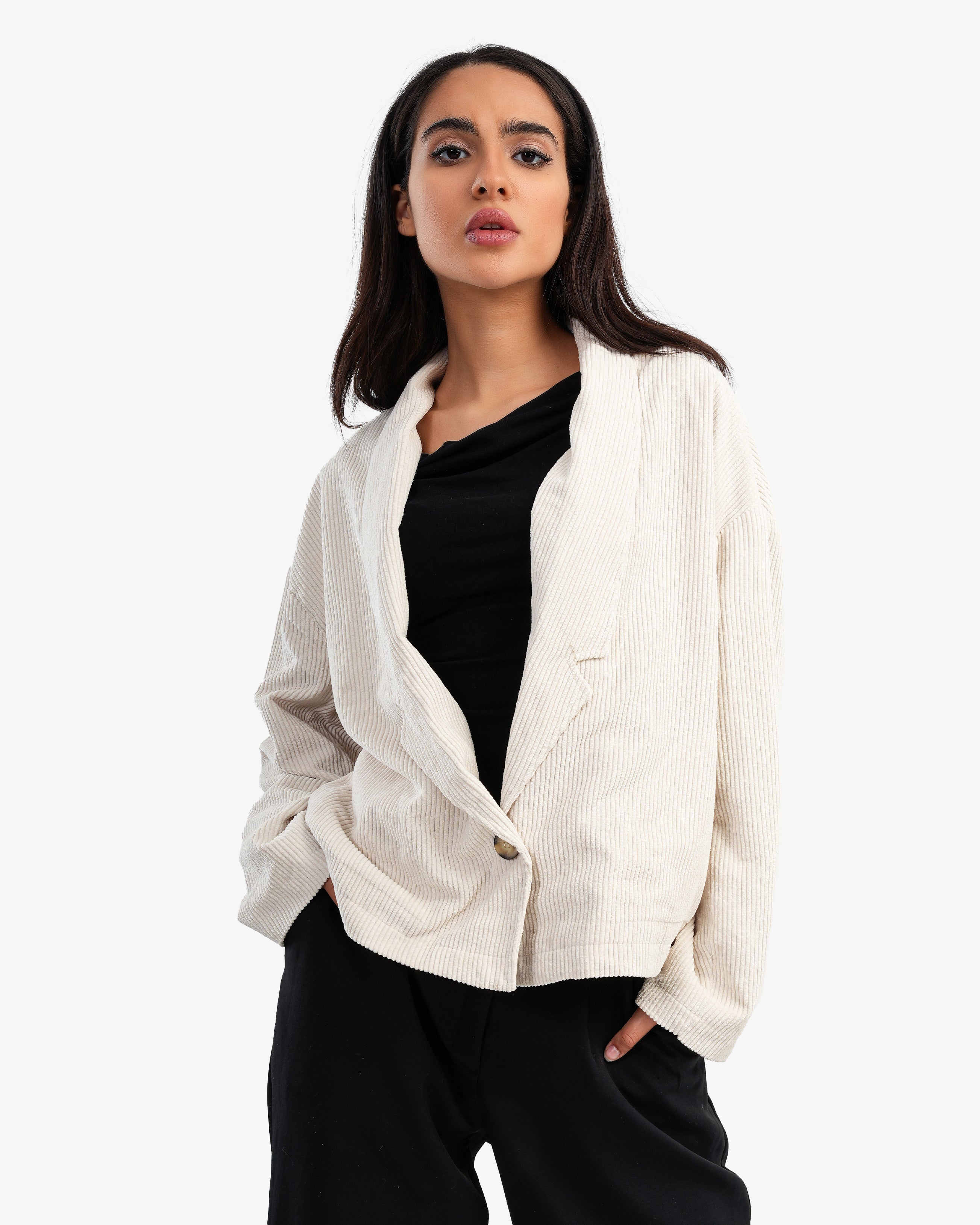 Women's Oversize Corduroy Blazer Cardigan In Off White