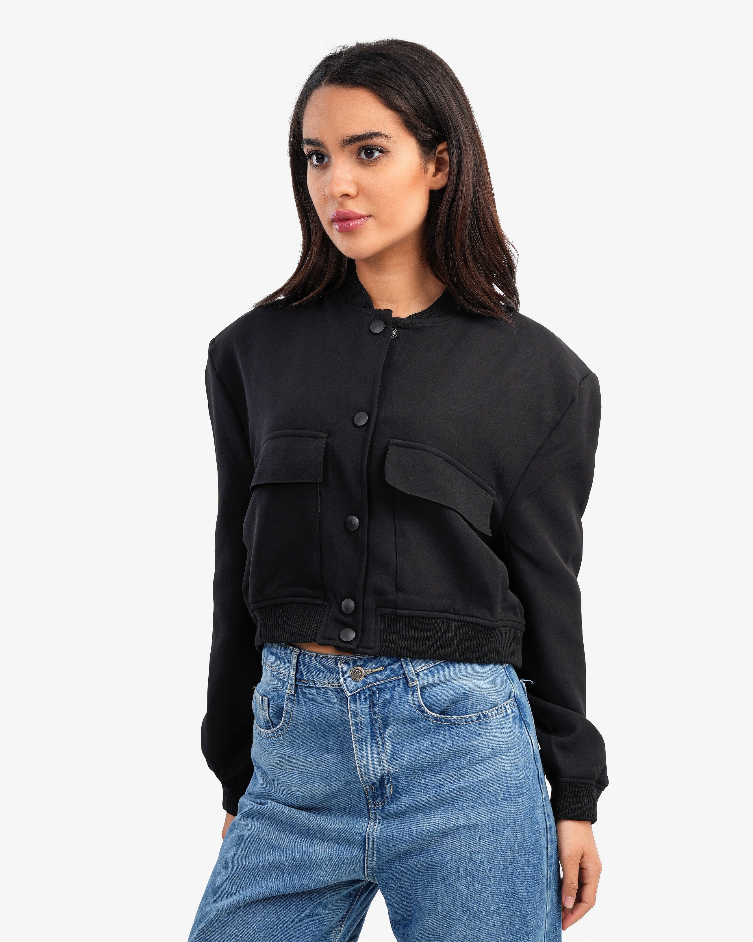 Women's Crop Bomber Jacket With Maxi Pockets Made In Turkey.