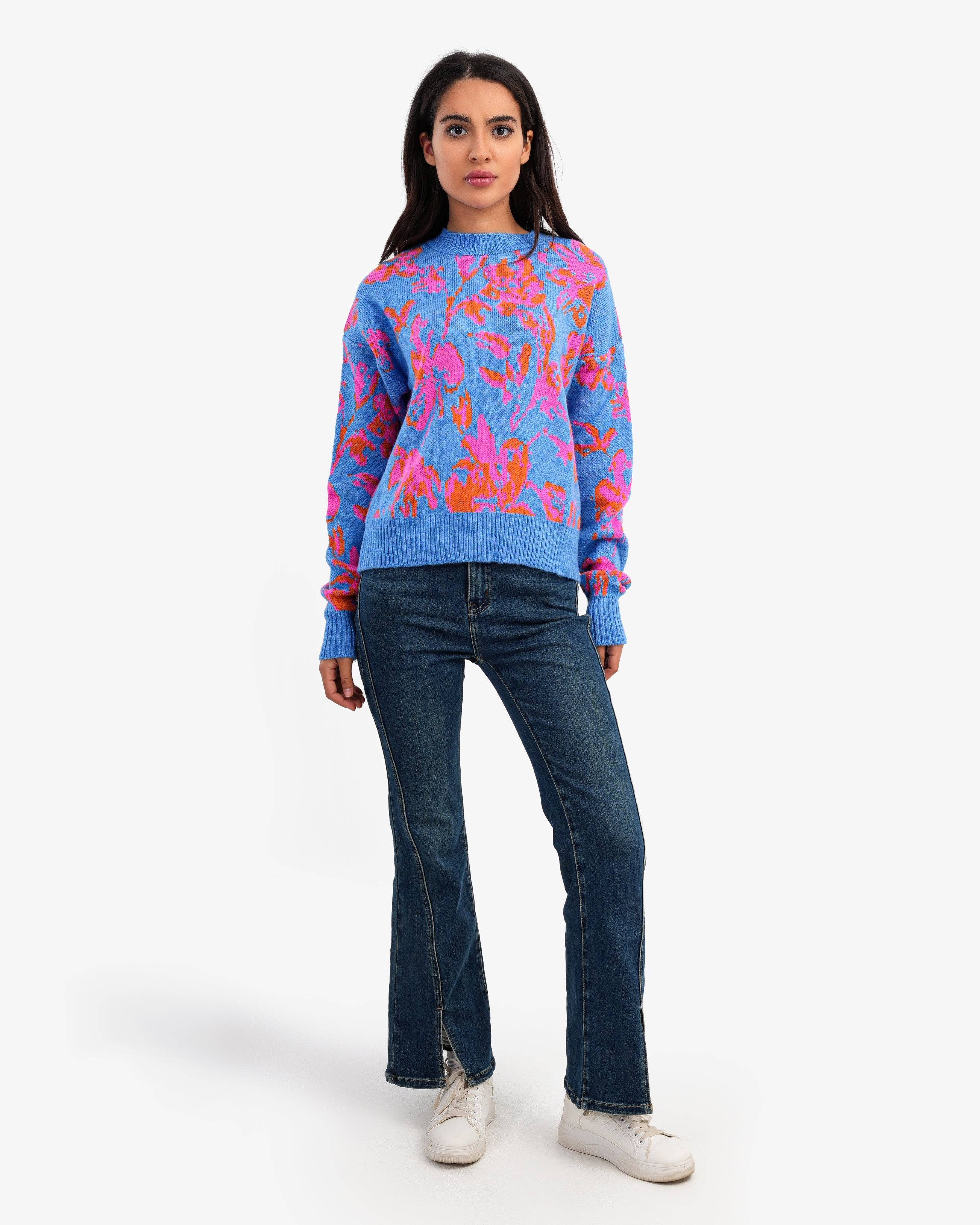 Women's Patterned Crew Neck Knitted Sweater