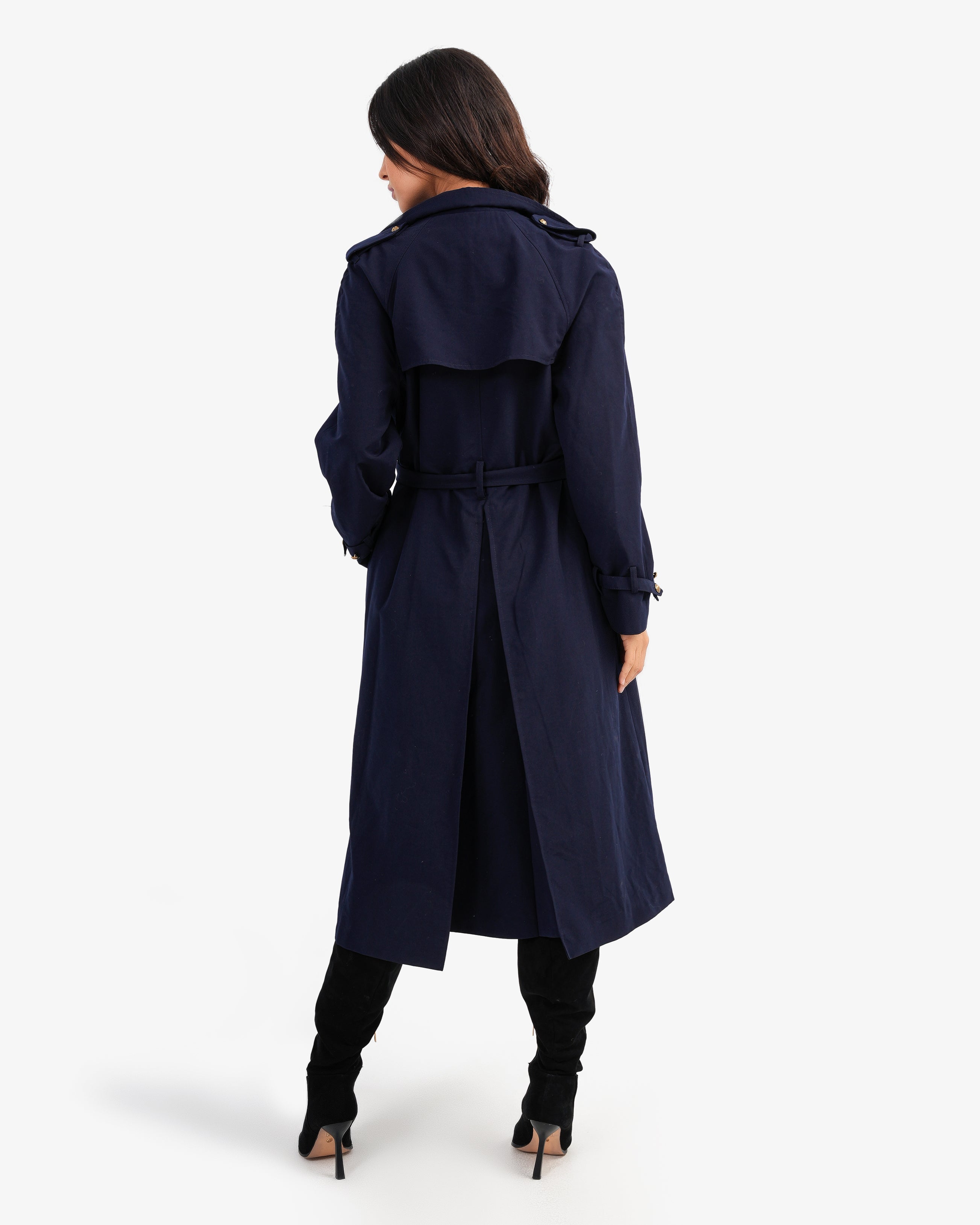 Women's Trench Coat With Gold Toned Buttons In Dark Blue