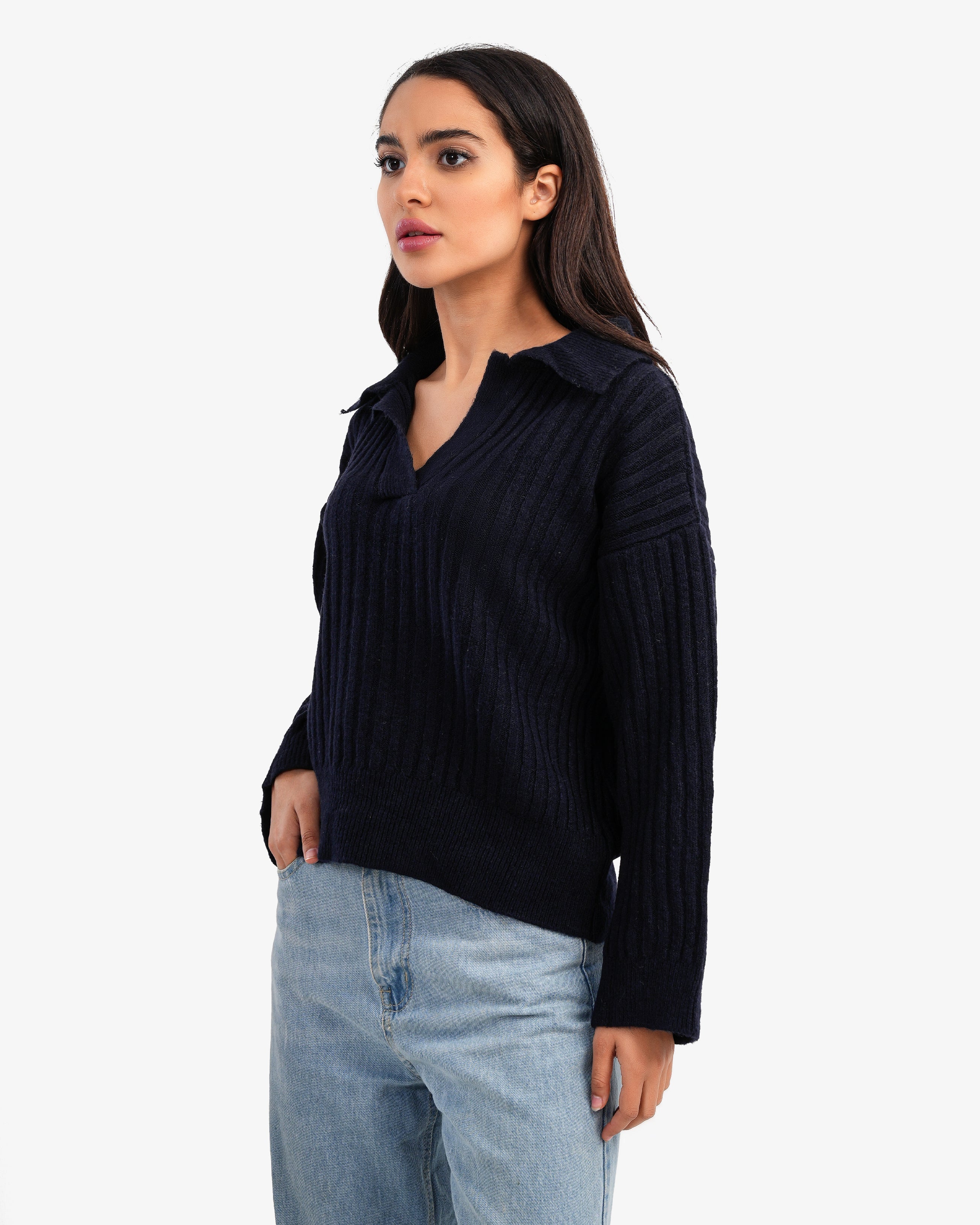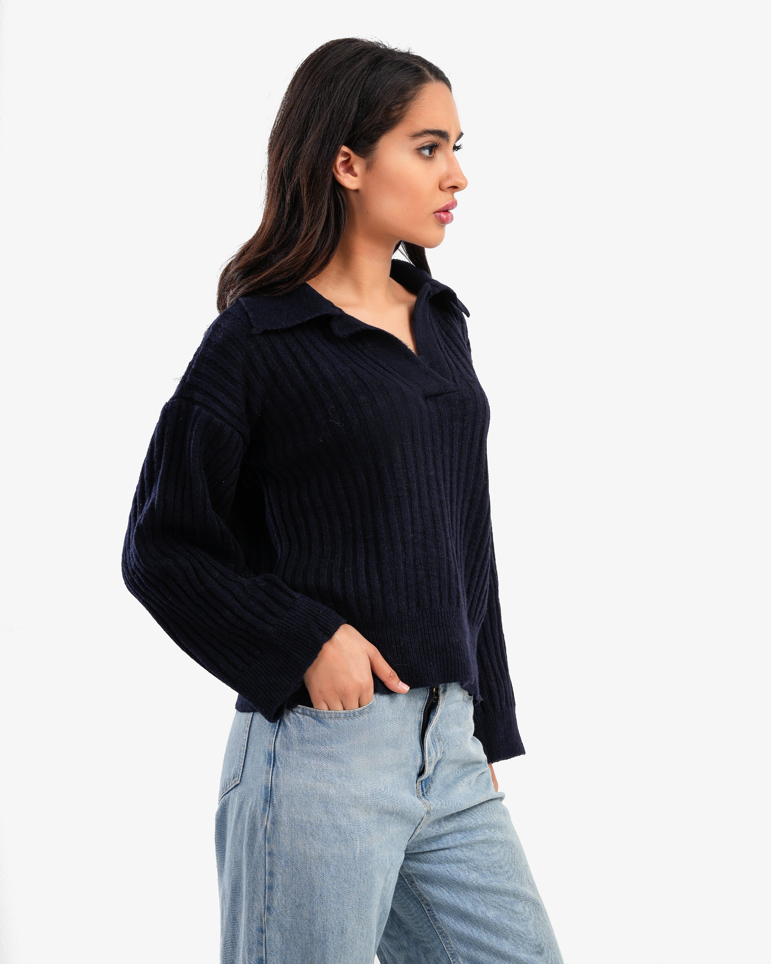 Women's Oversize V Neck Pullover In Dark Blue