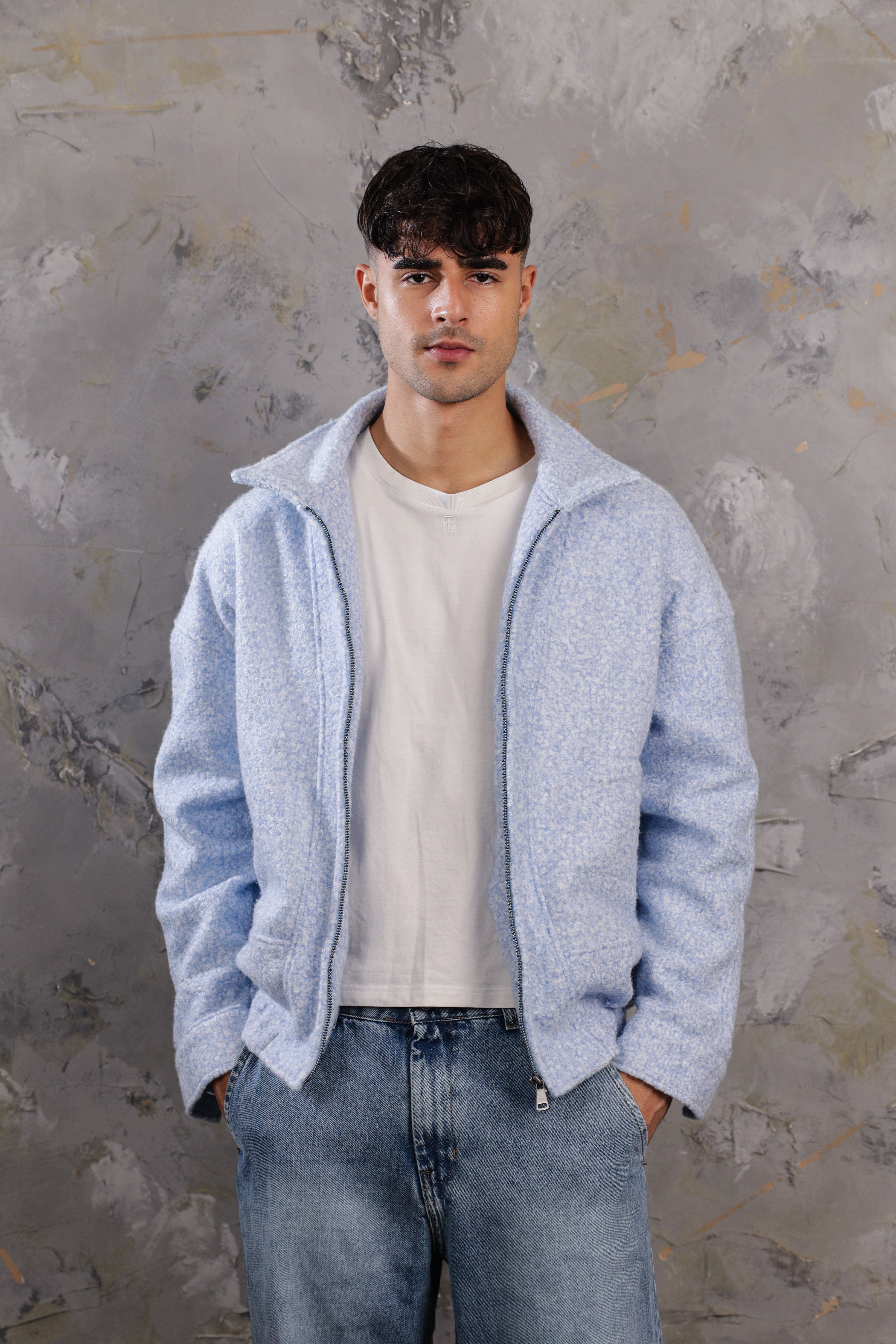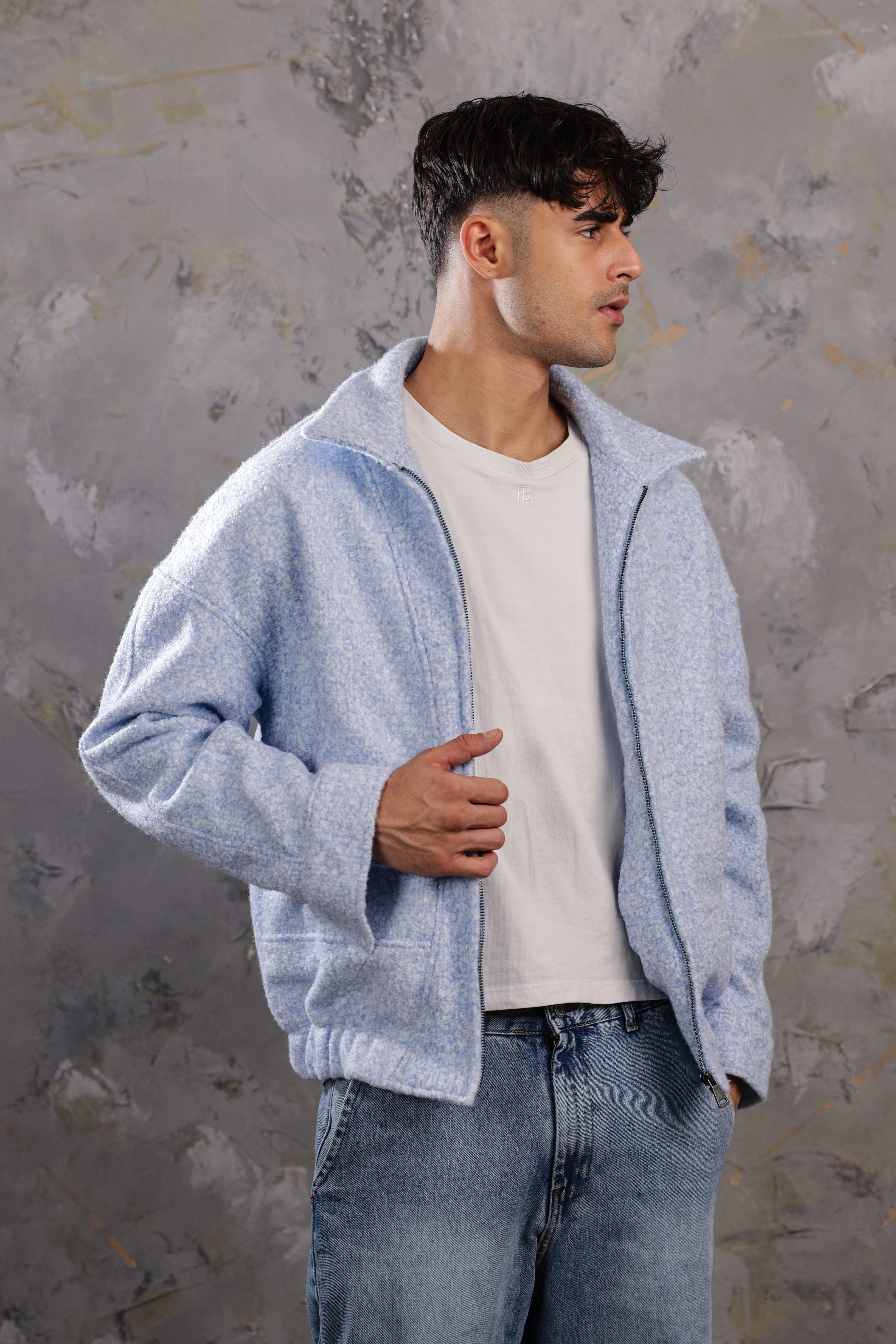 Men's Soft Baby Blue Textured Zip Jacket - Made in Turkey.