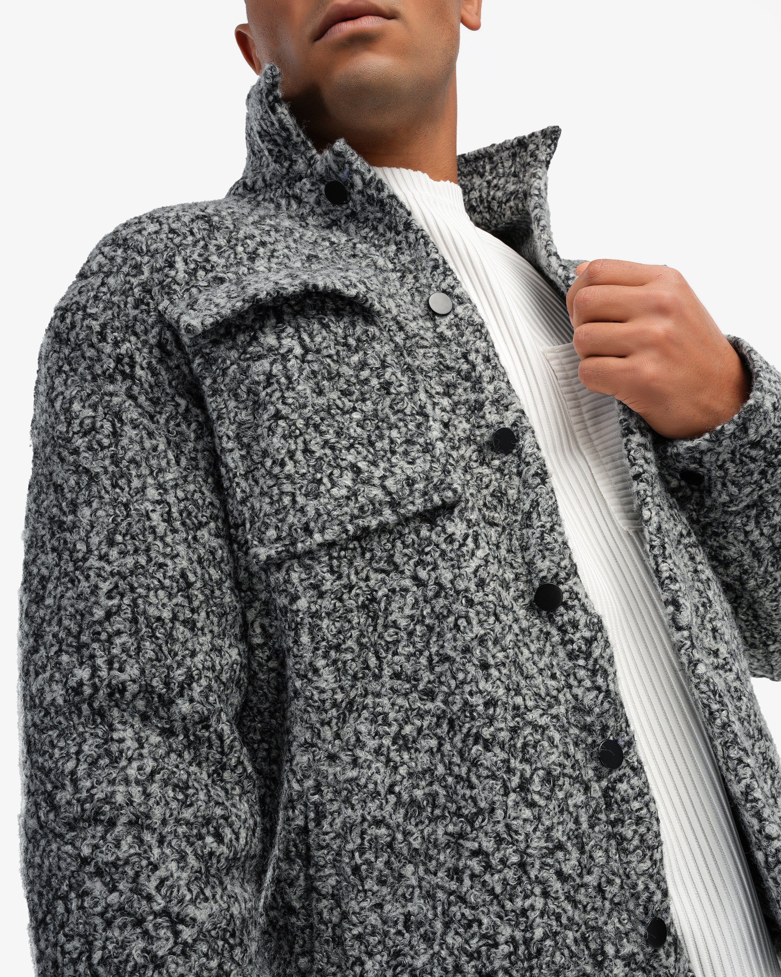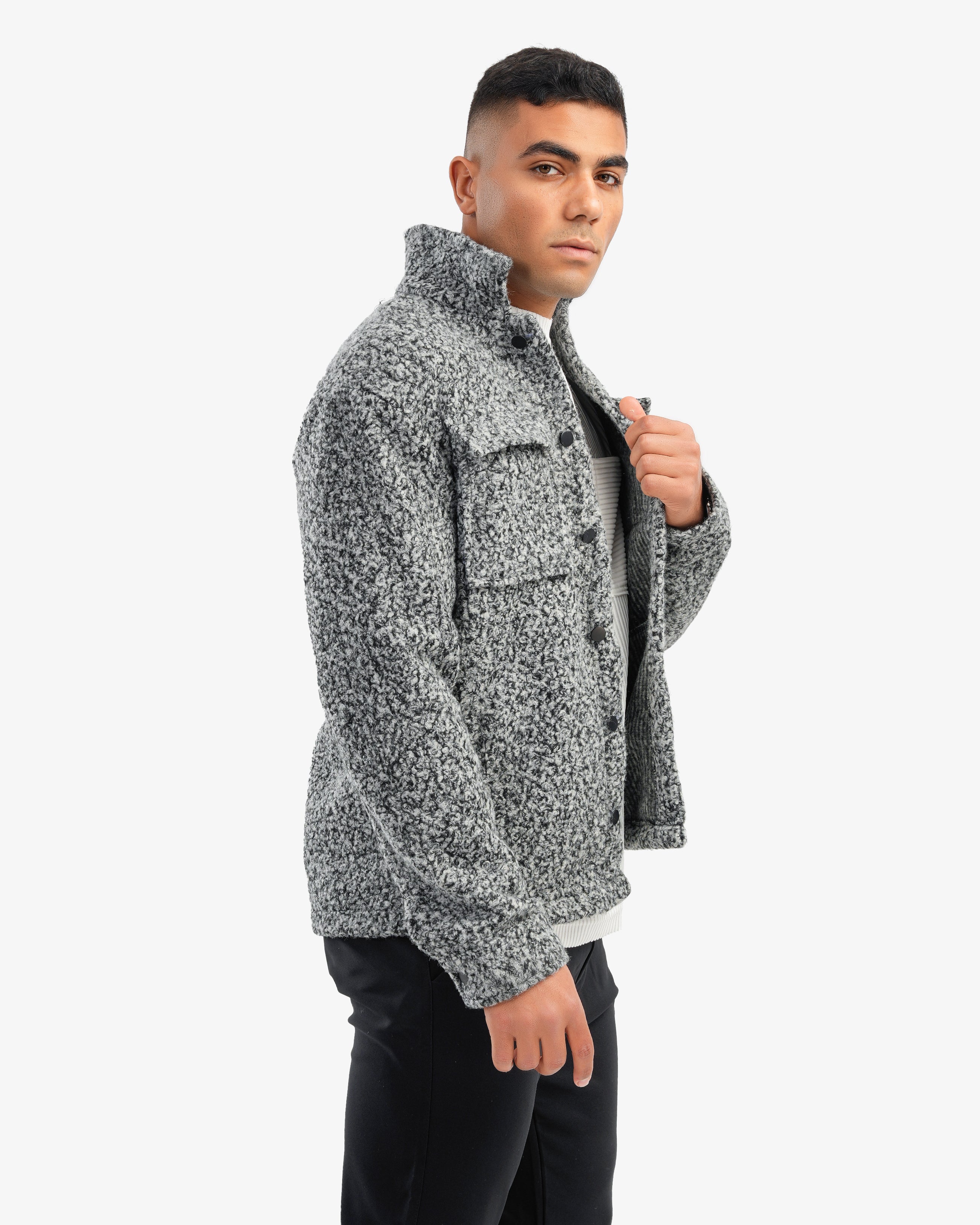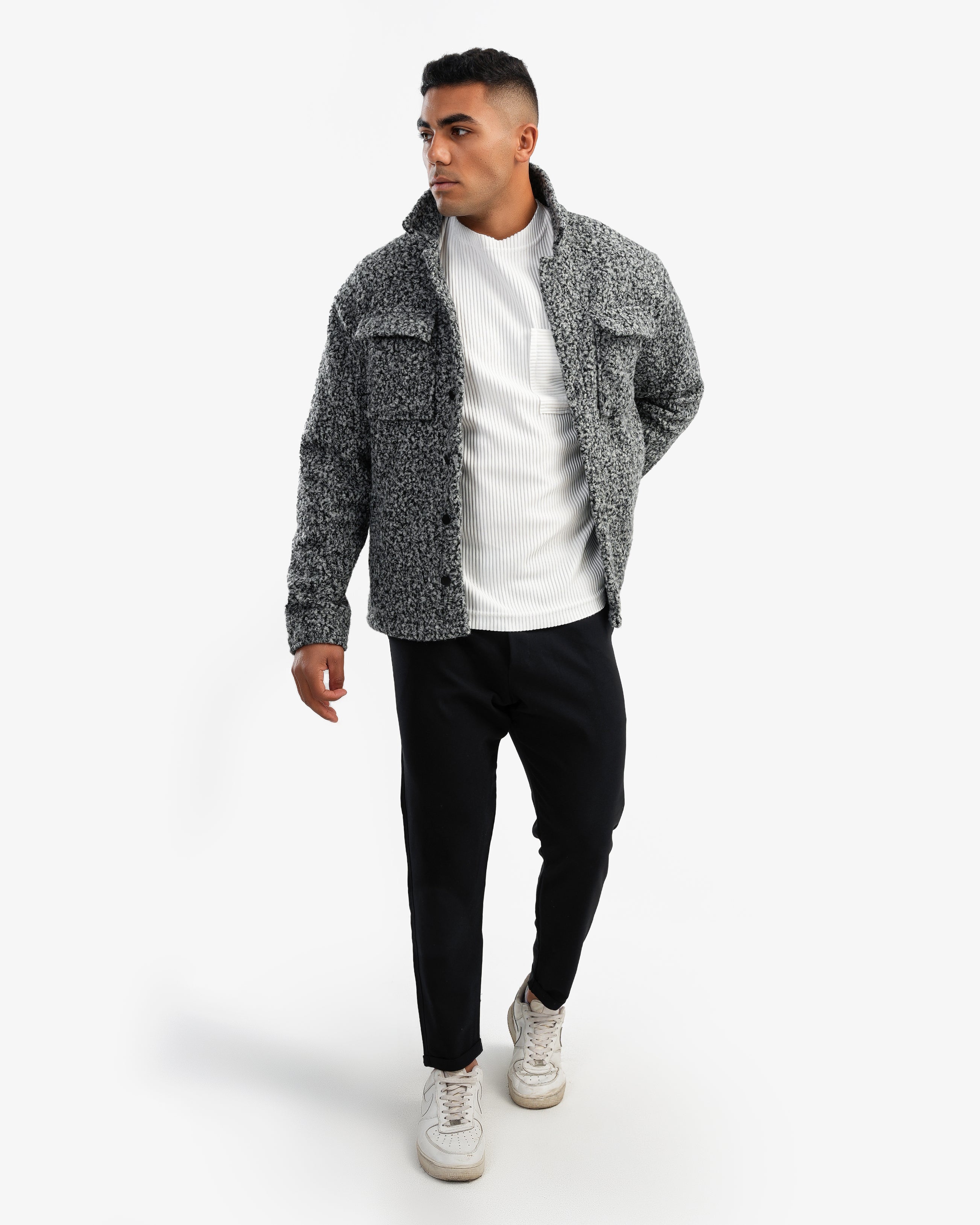 Men’s Textured Trucker Overshirt In Gray Made In Turkey.