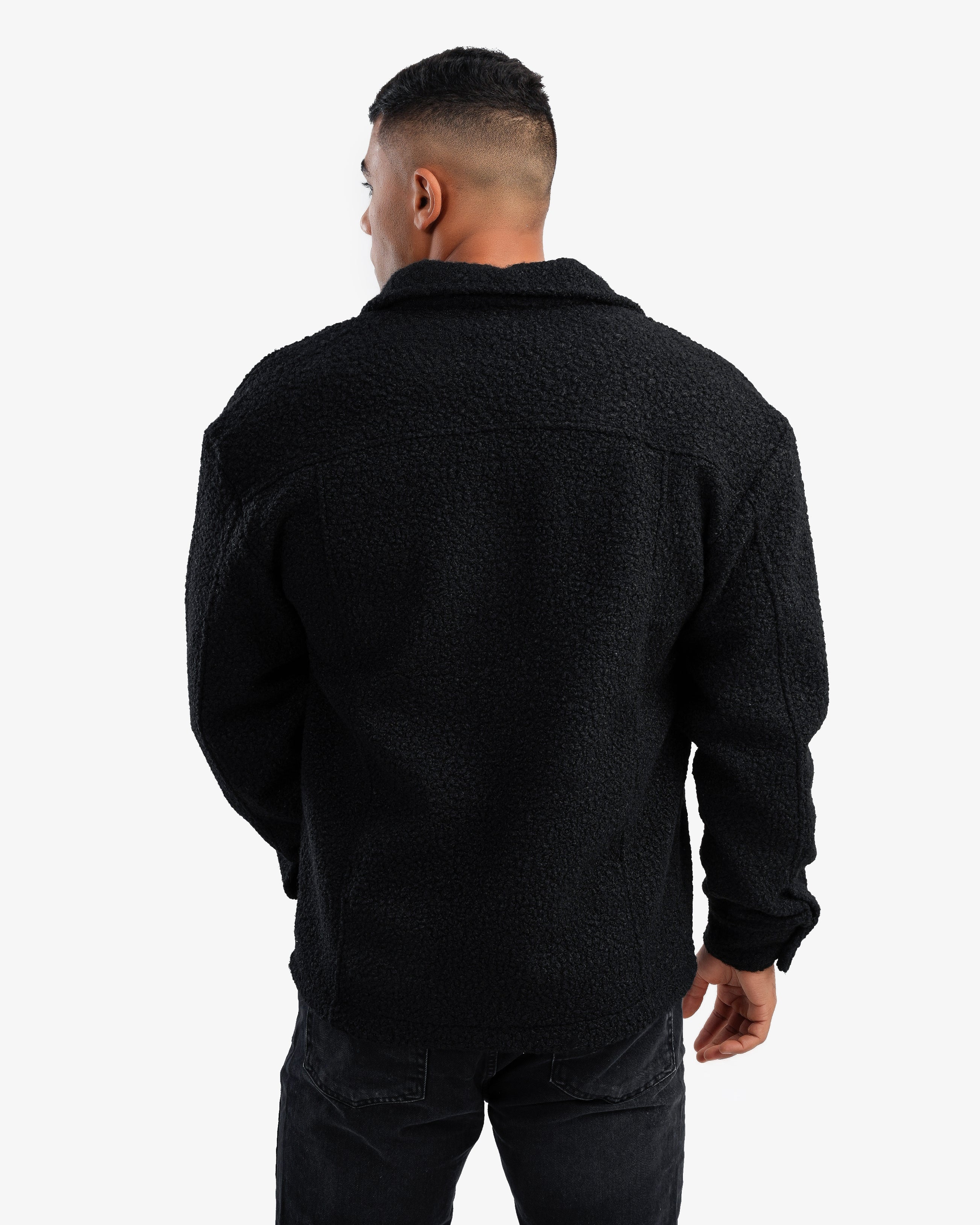 Men’s Textured Trucker Overshirt In Black Made In Turkey.