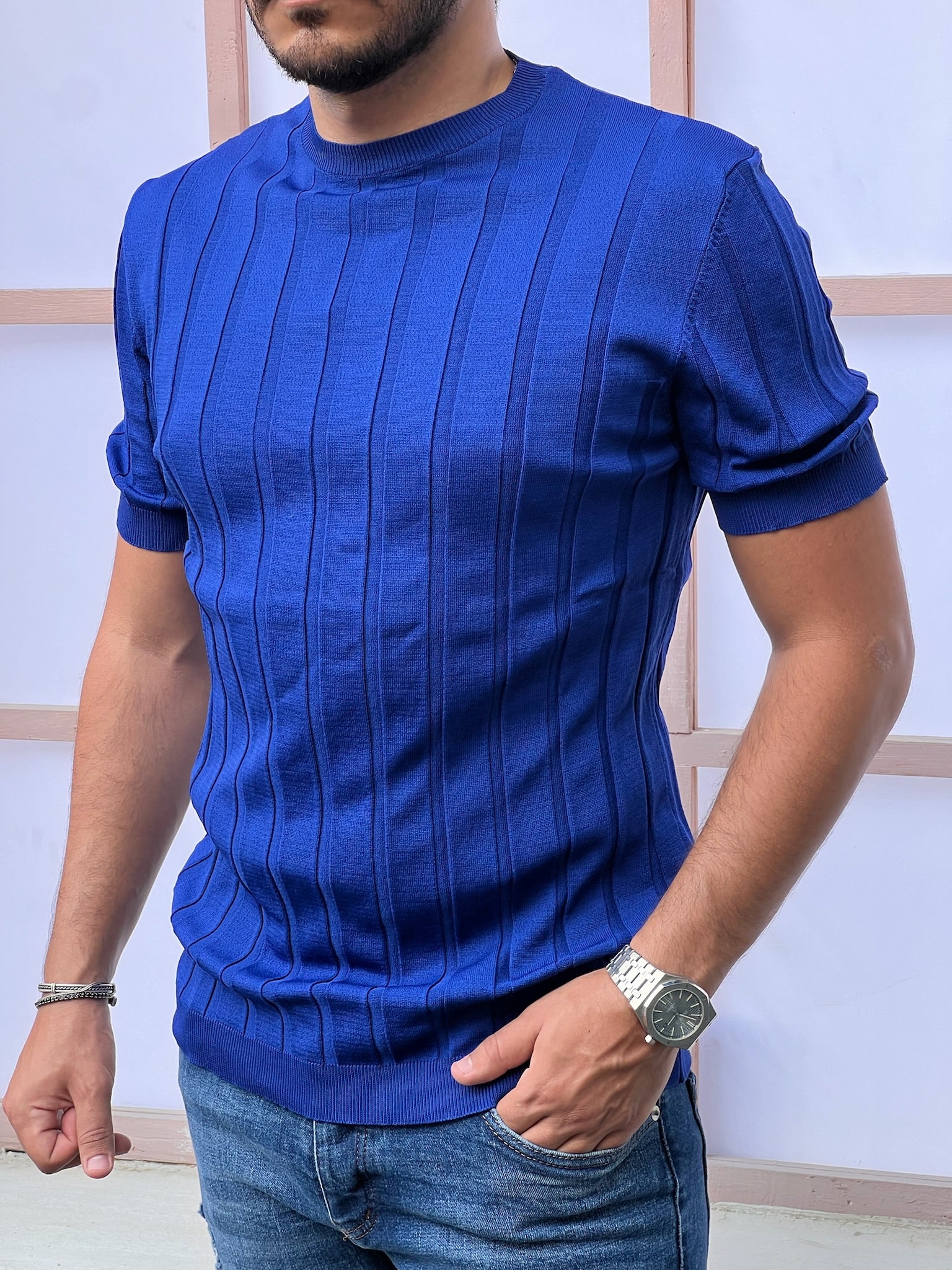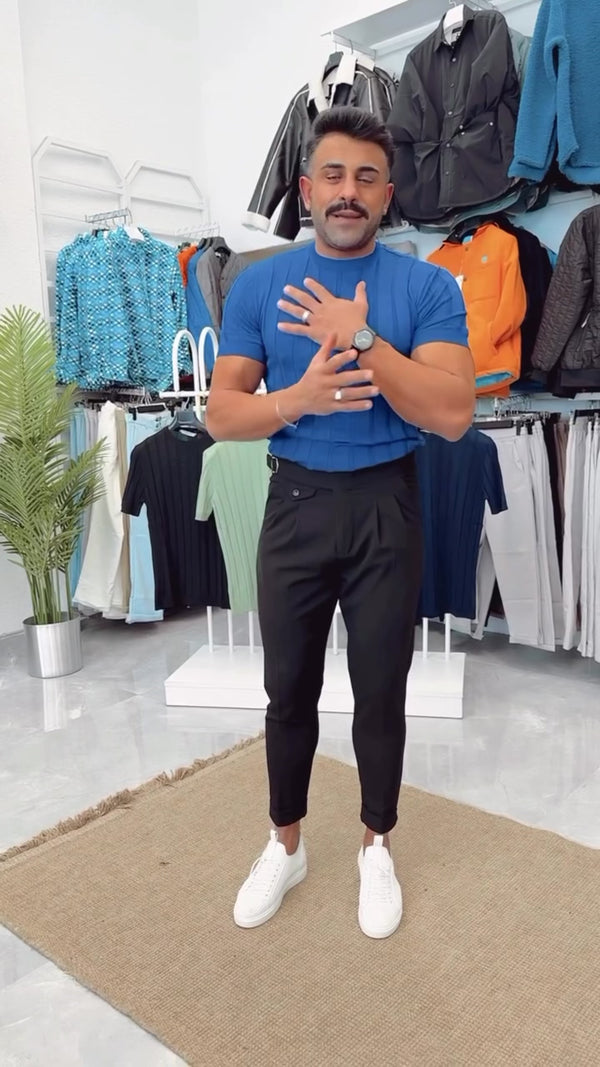Men's Blue Round Neck T-shirt