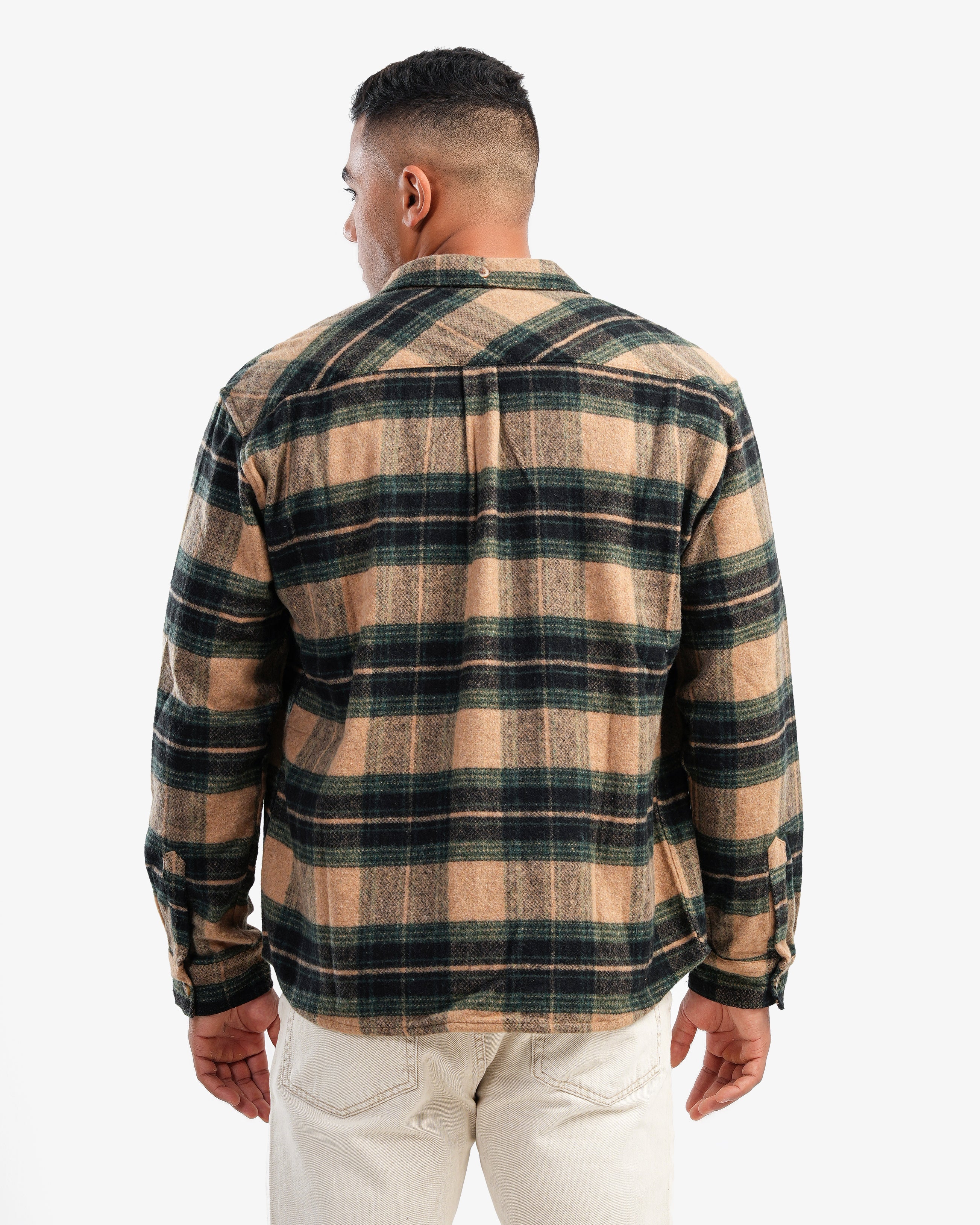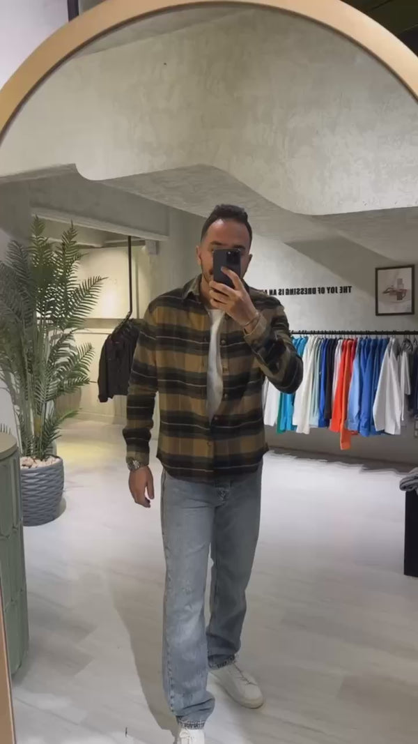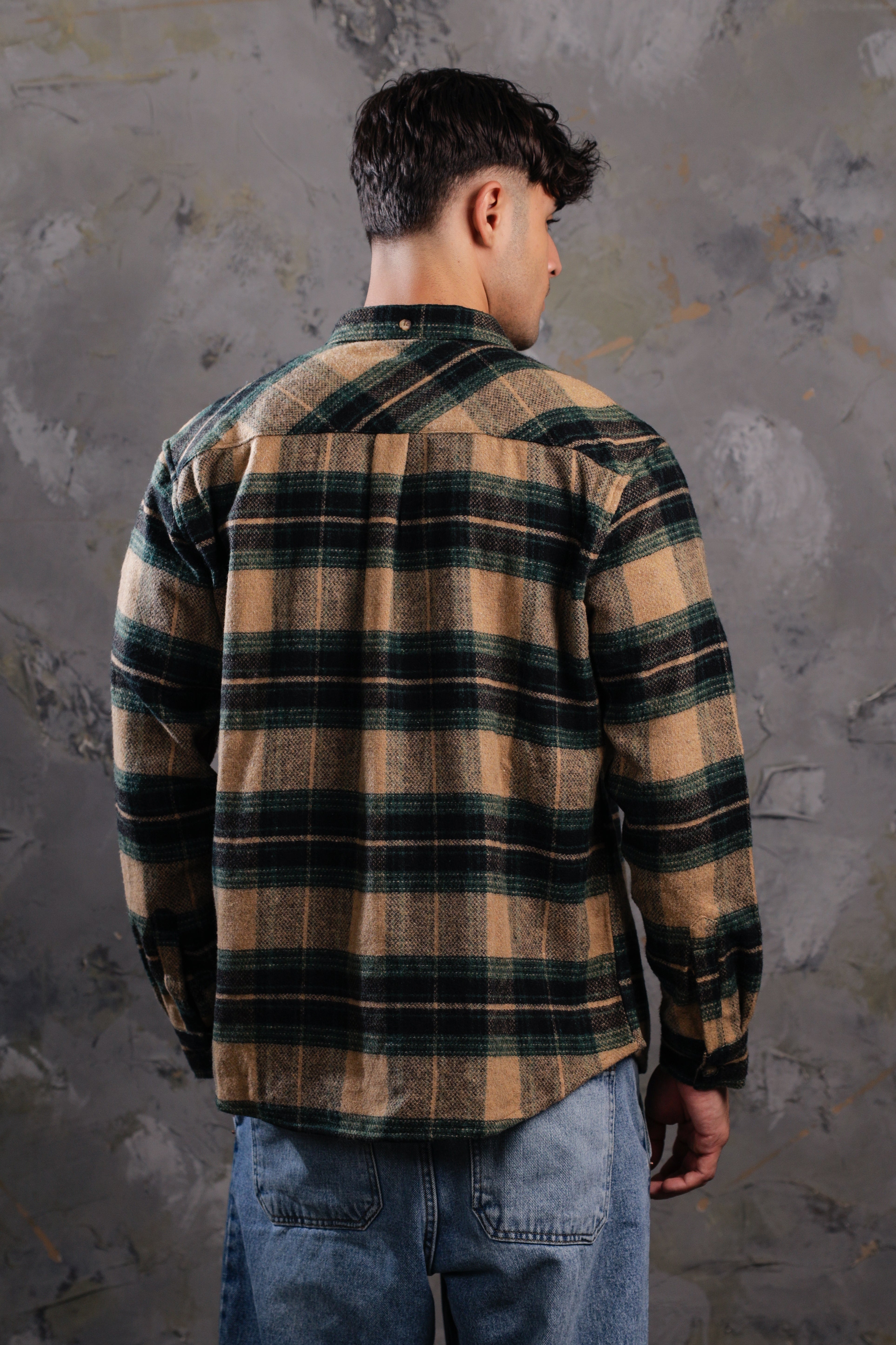 Men's Collar Wool Stripped Long Sleeve Shirt In Olive