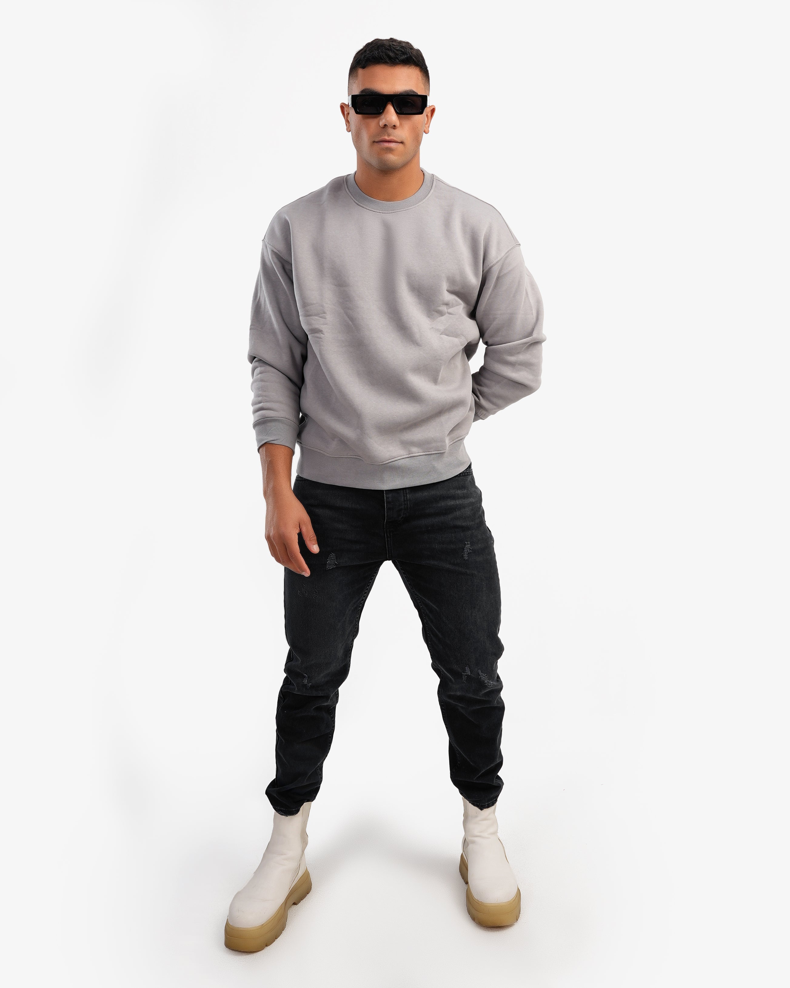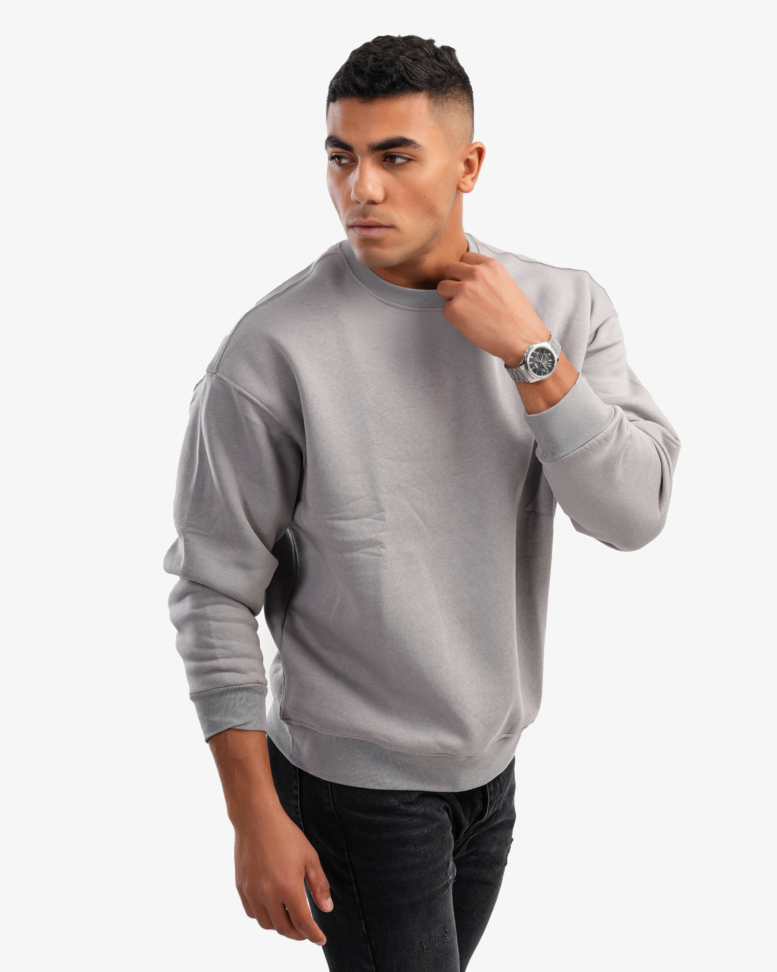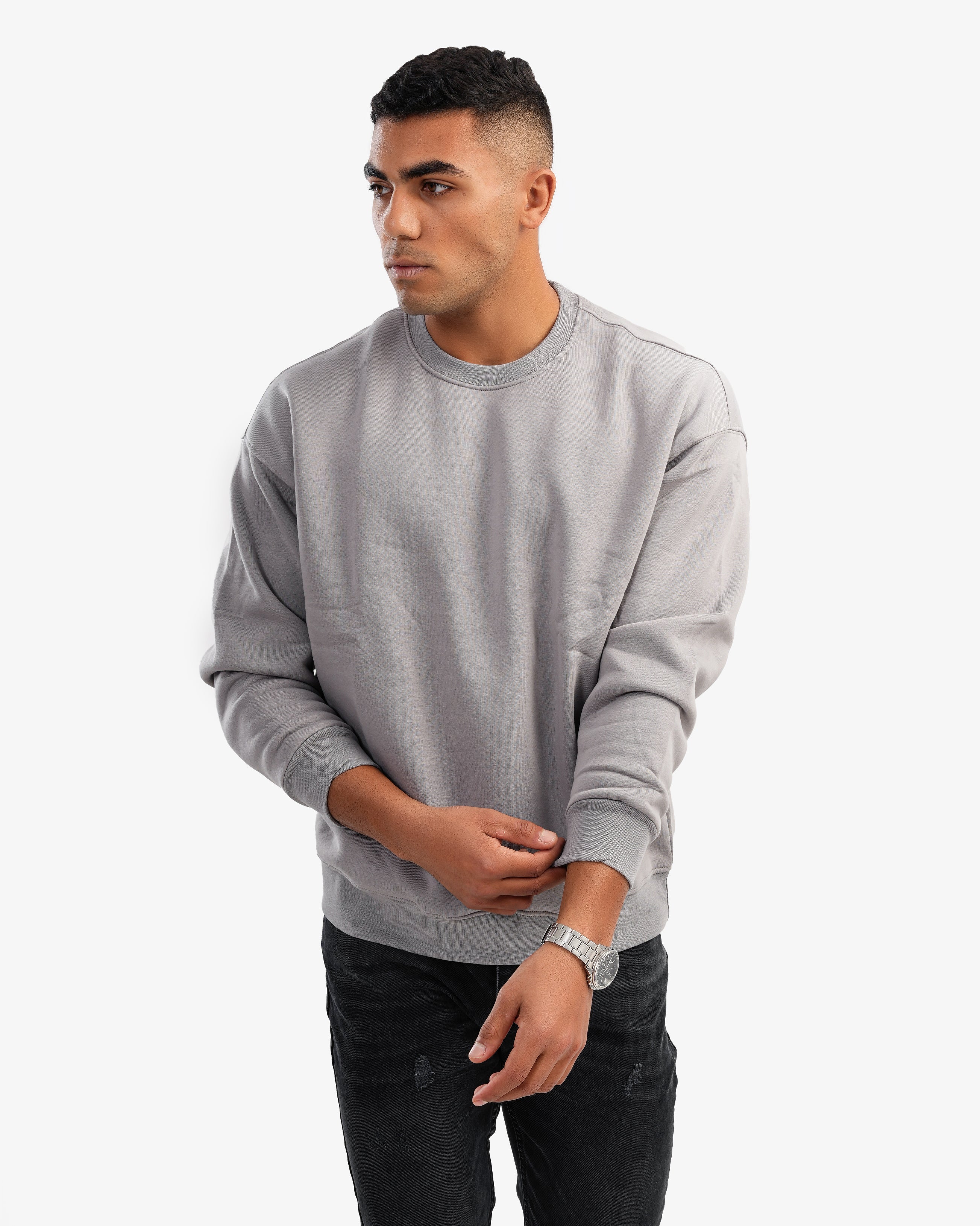 Men's Crew Neck Basic Sweatshirt In Gray