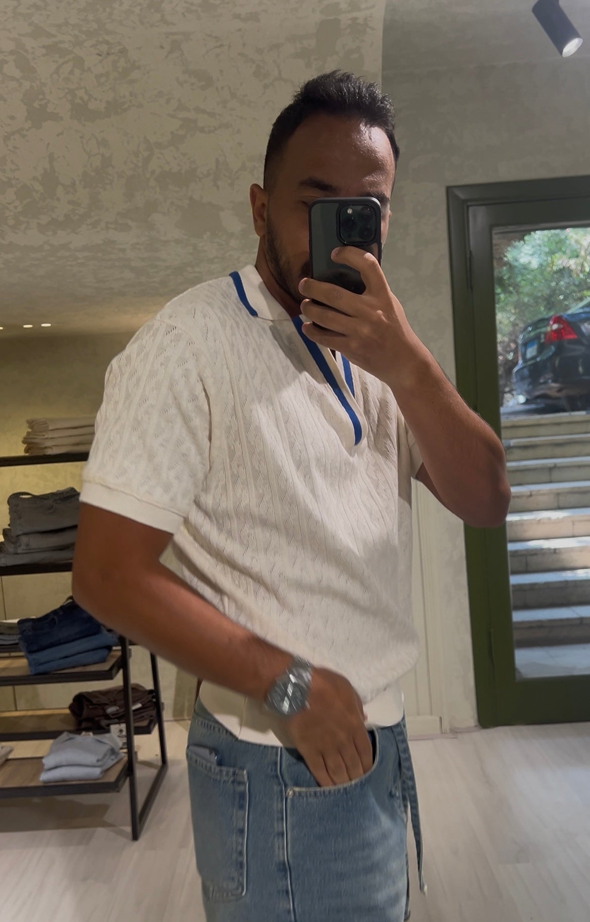 Men's Offwhite In Blue V Neck Collar T-shirt