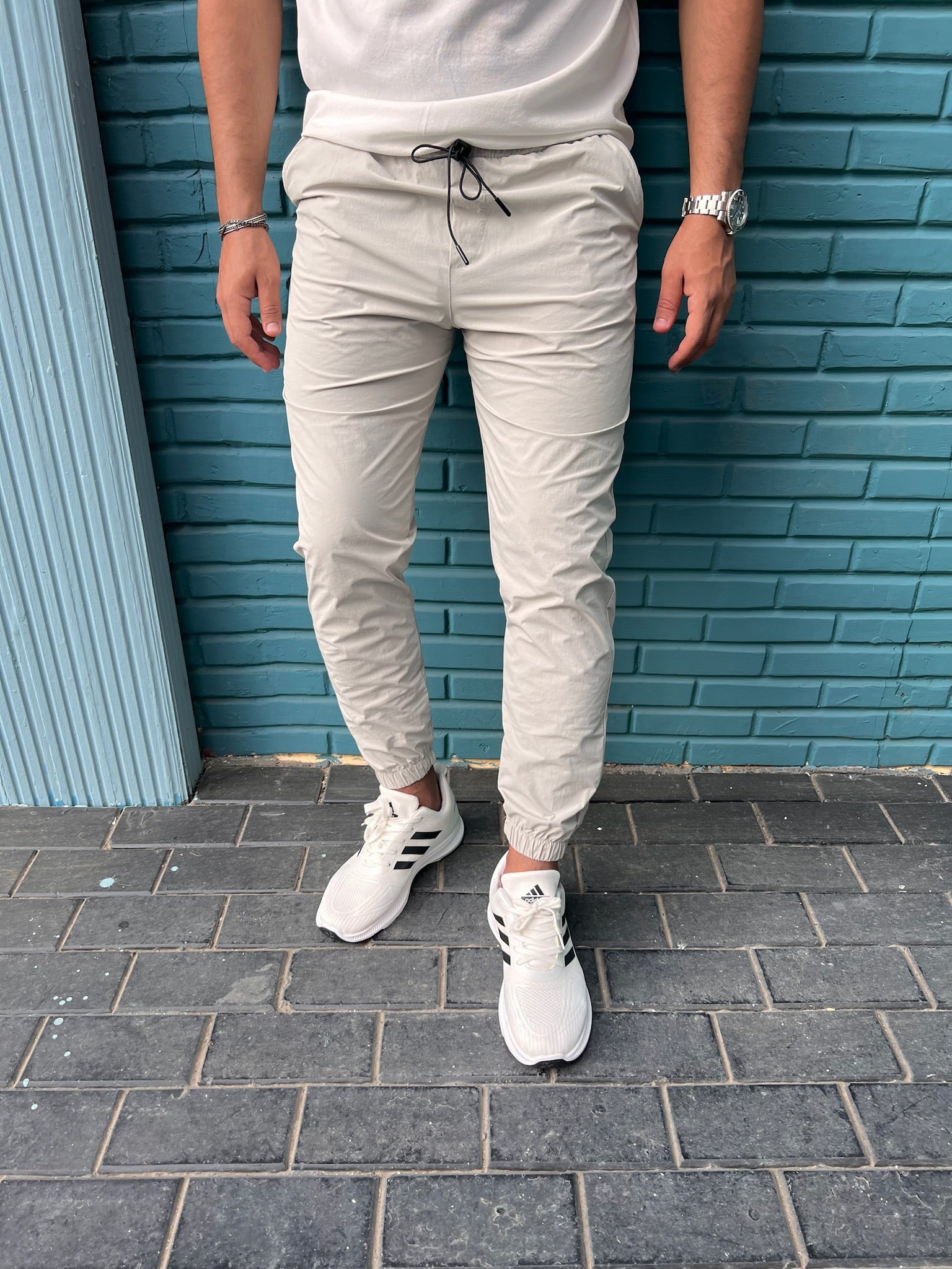 Men's Slimline Joggers Trousers In Beige