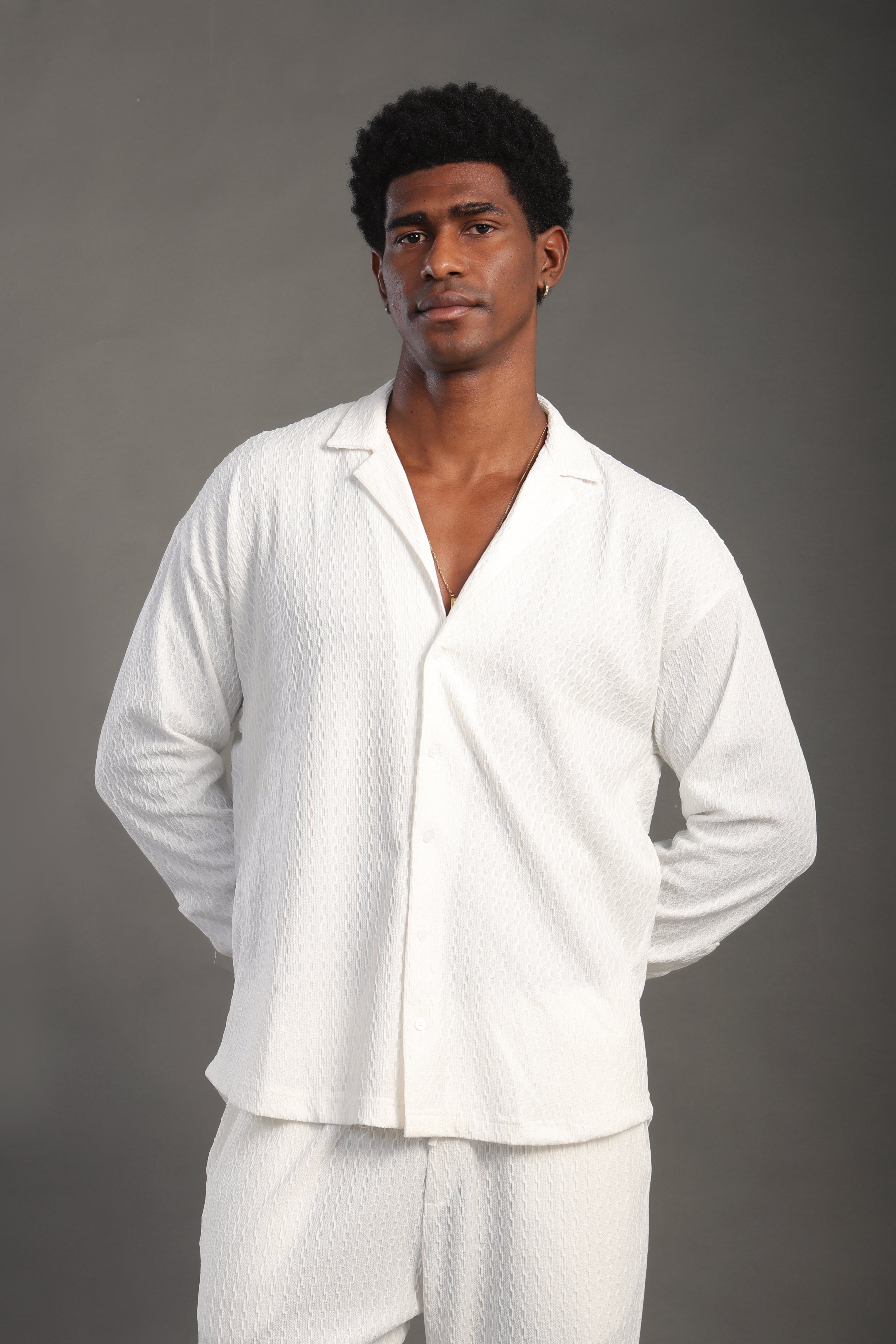 Men's White Dobby Texture Casual Set
