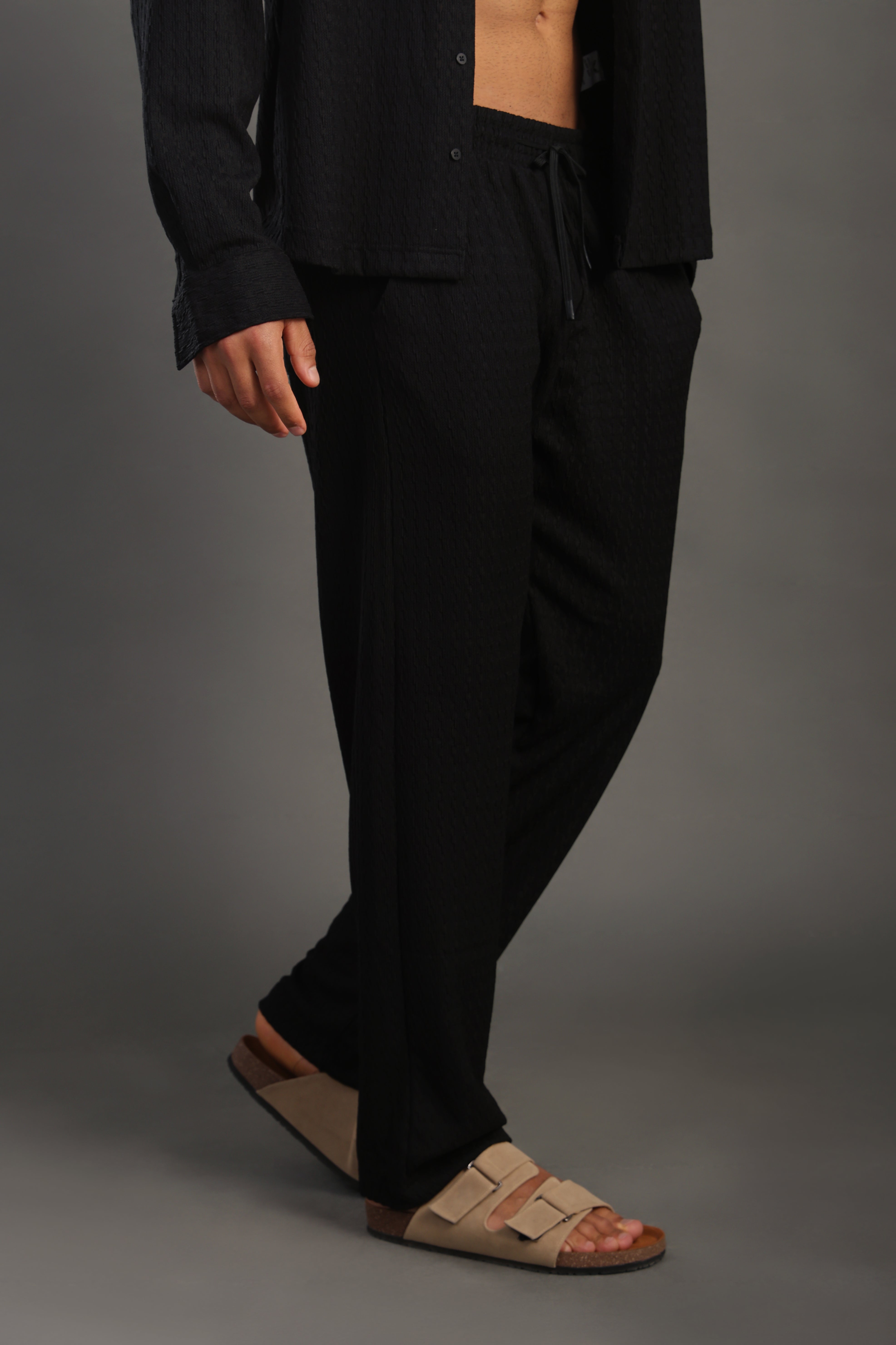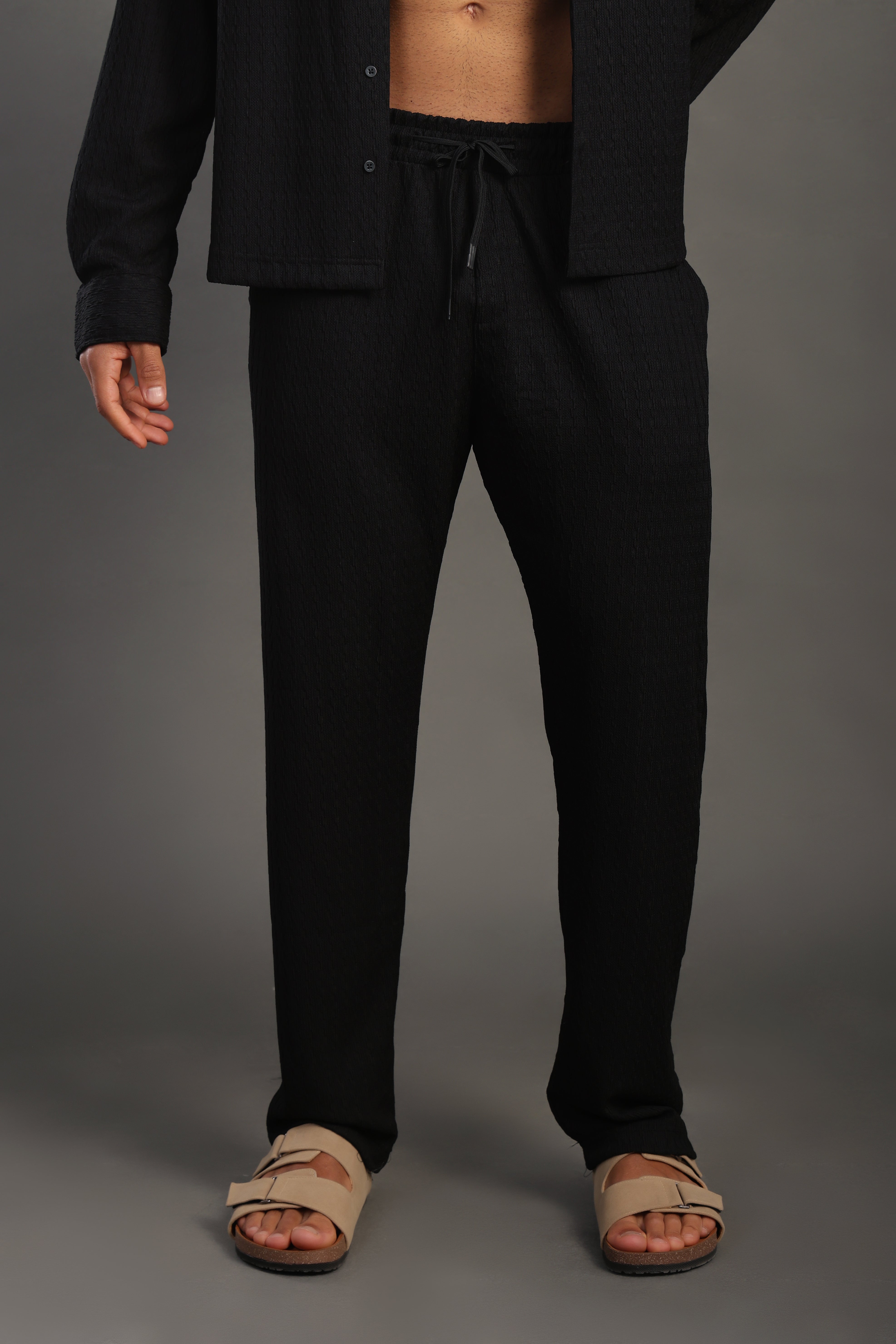 Men's Black Casual Dobby Texture Trousers