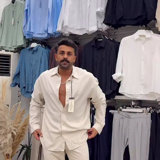 Vintage feel, so soft, probably your new favorite shirt. For those who like the long / oversize look. A trendy and versatile addition to any wardrobe. Oversize Loose Linen Shirts are the ultimate go-to for men who want to look sharp and feel comfortable at the same time.