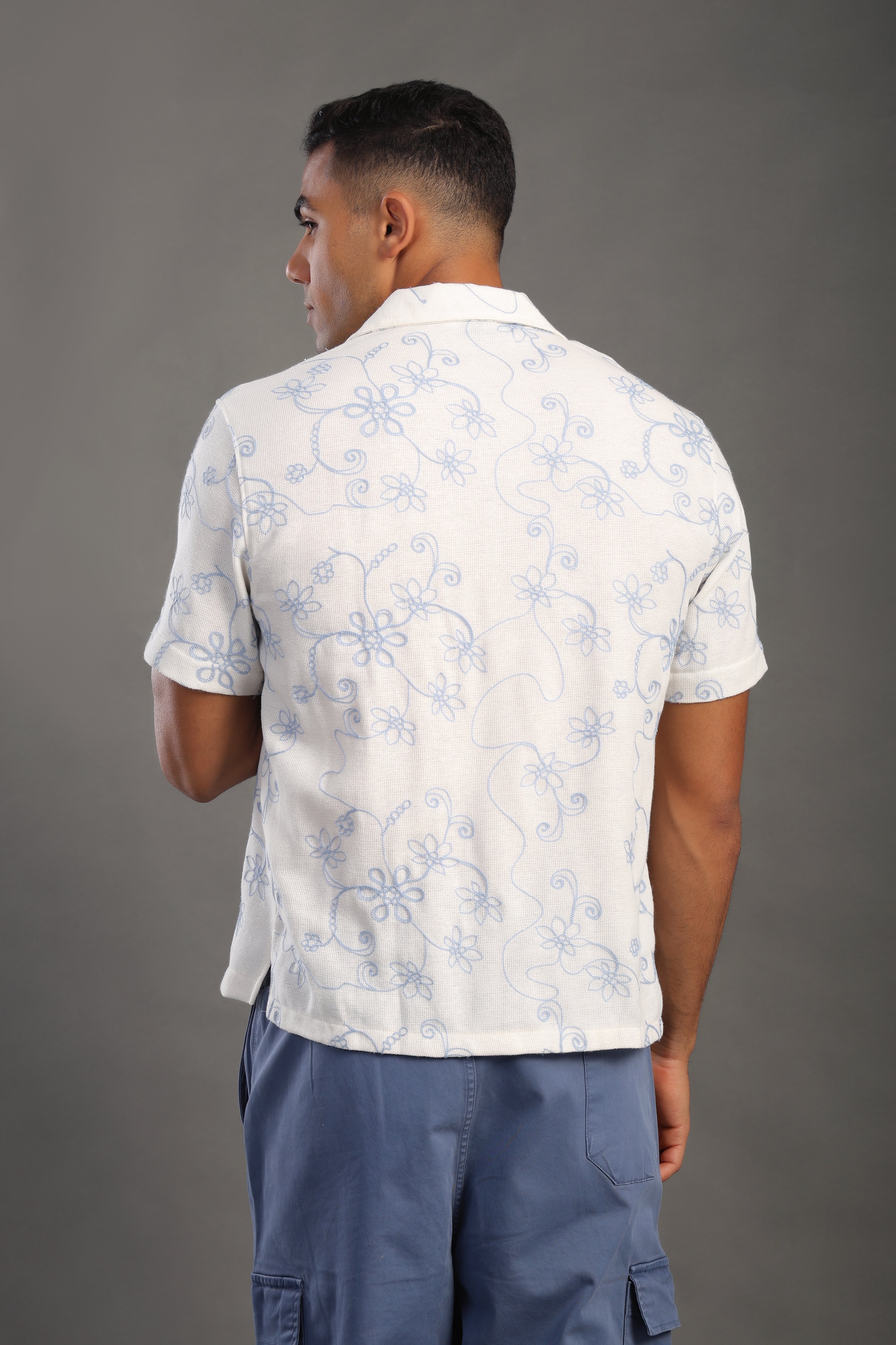 Men's Skyblue Half Sleeve Printed V Neck Collar Shirt Made in Turkey.