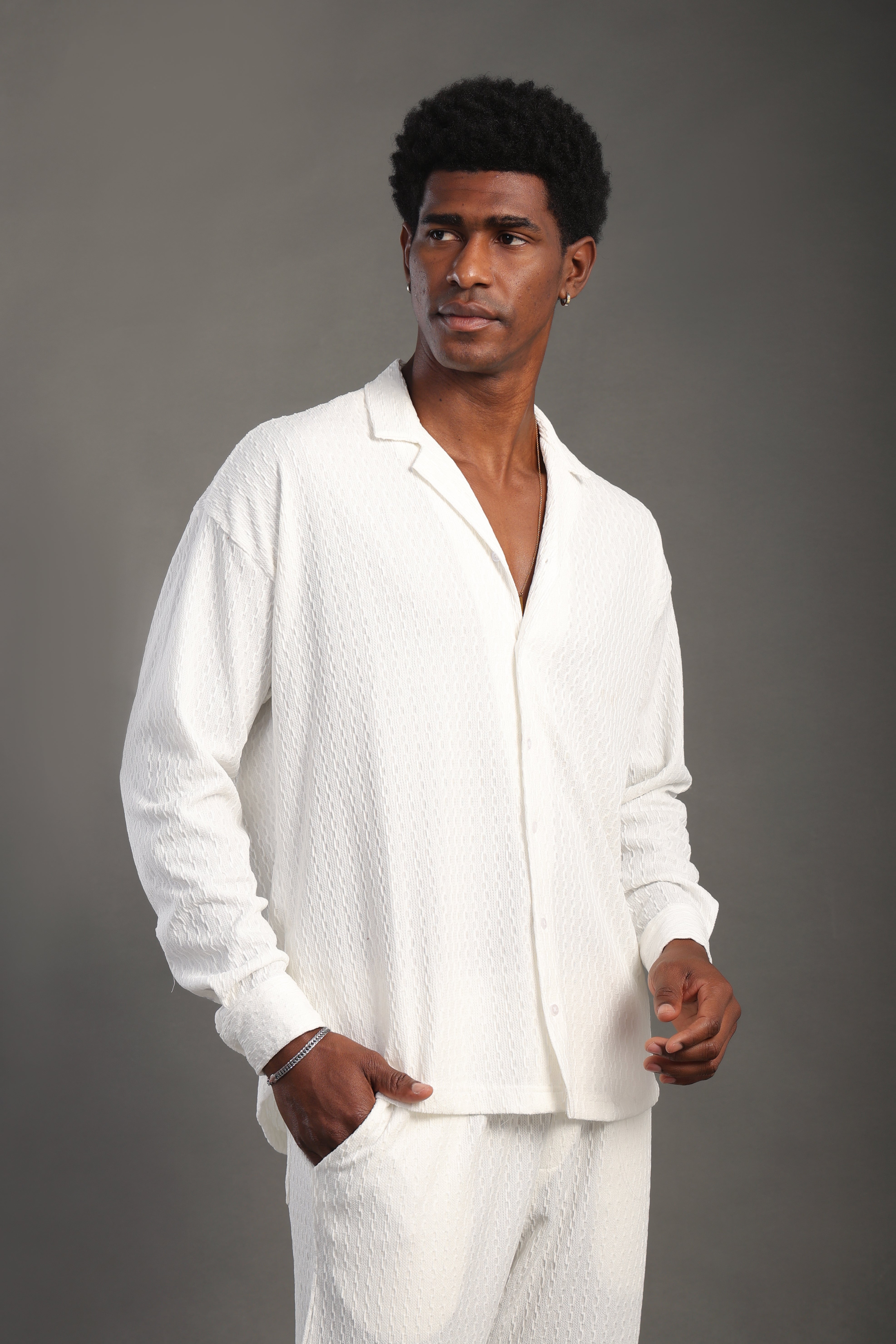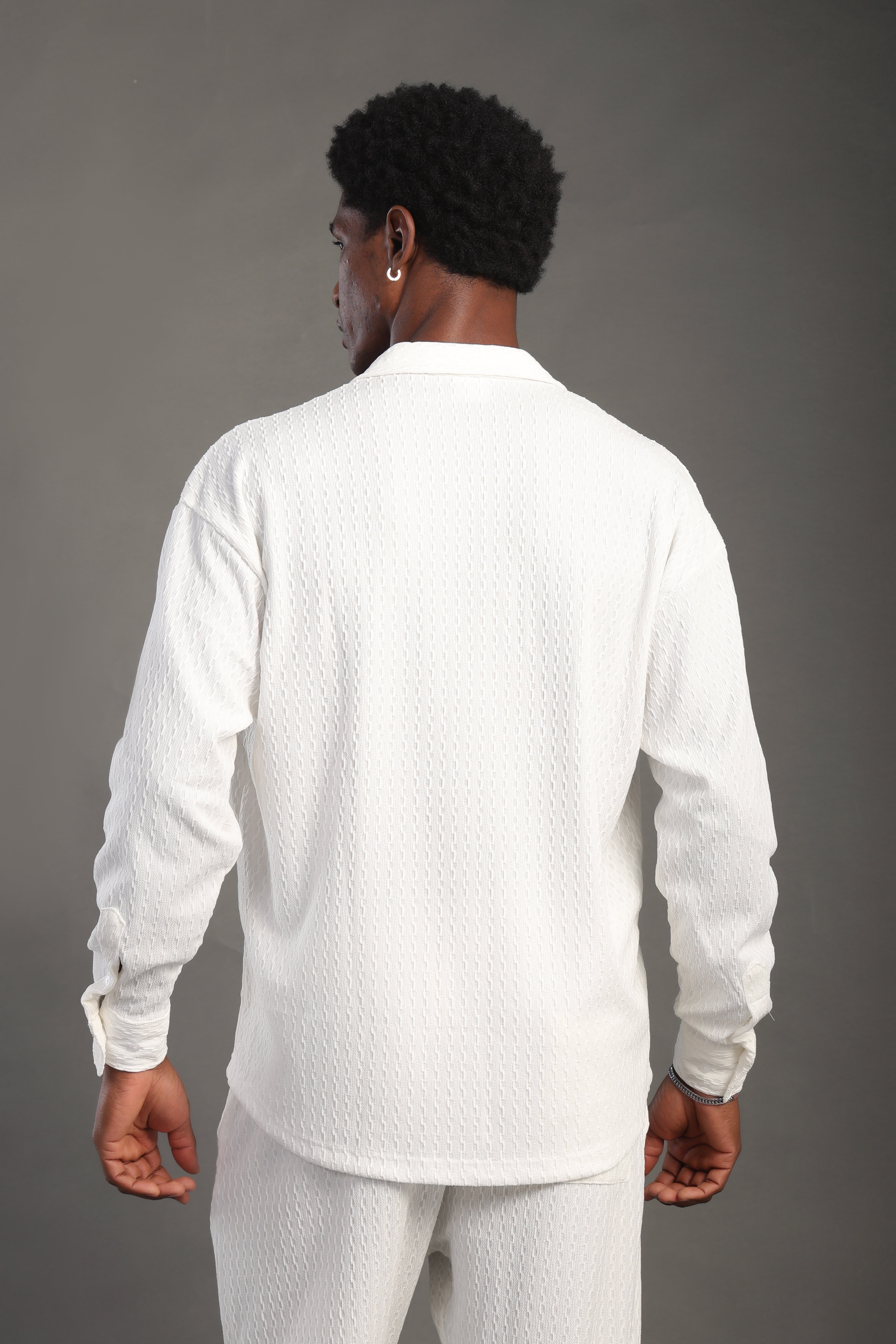 Men's White Long Sleeve Dobby Texture Shirt