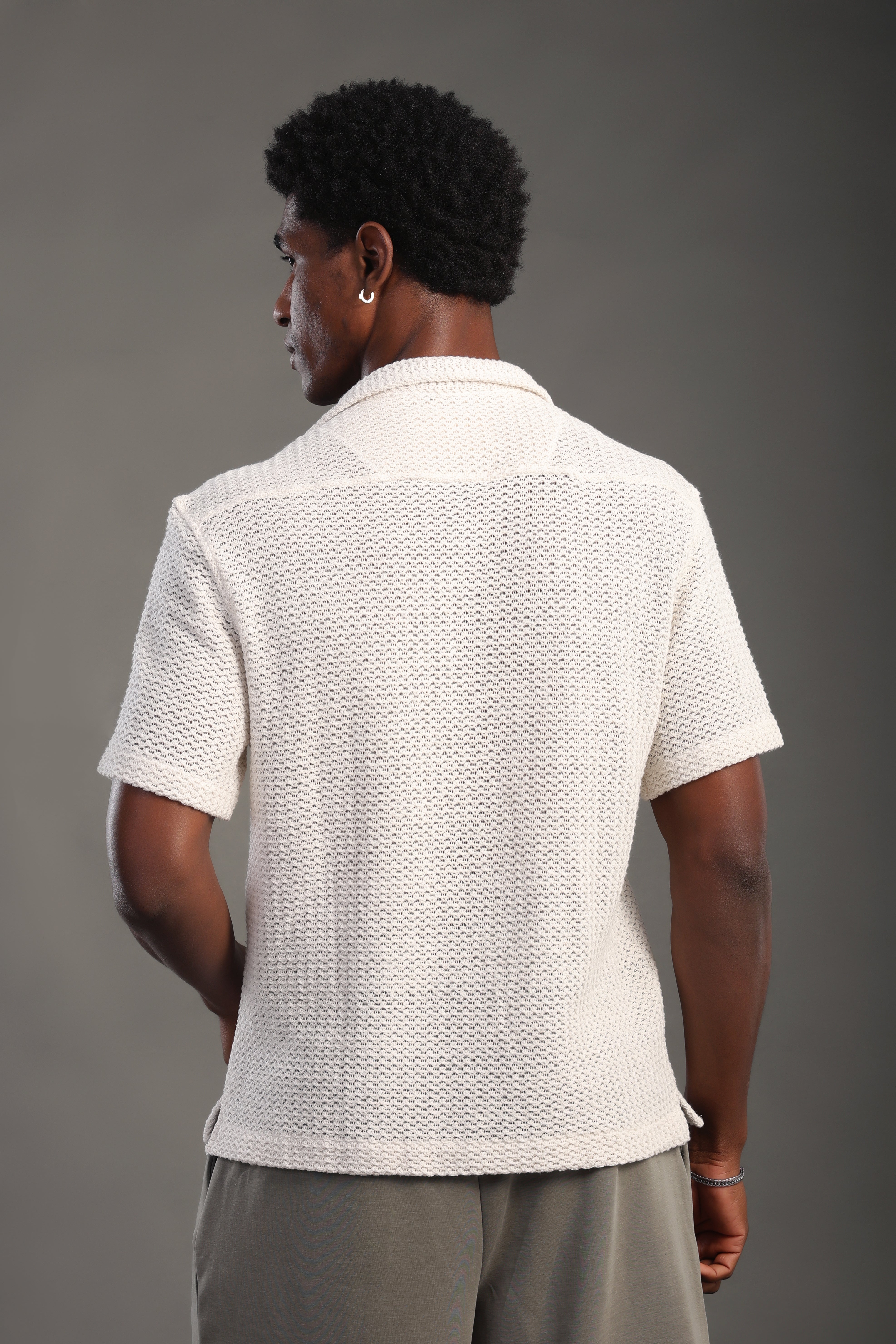 Men's Offwhite Half Sleeve V Neck Collar Shirt