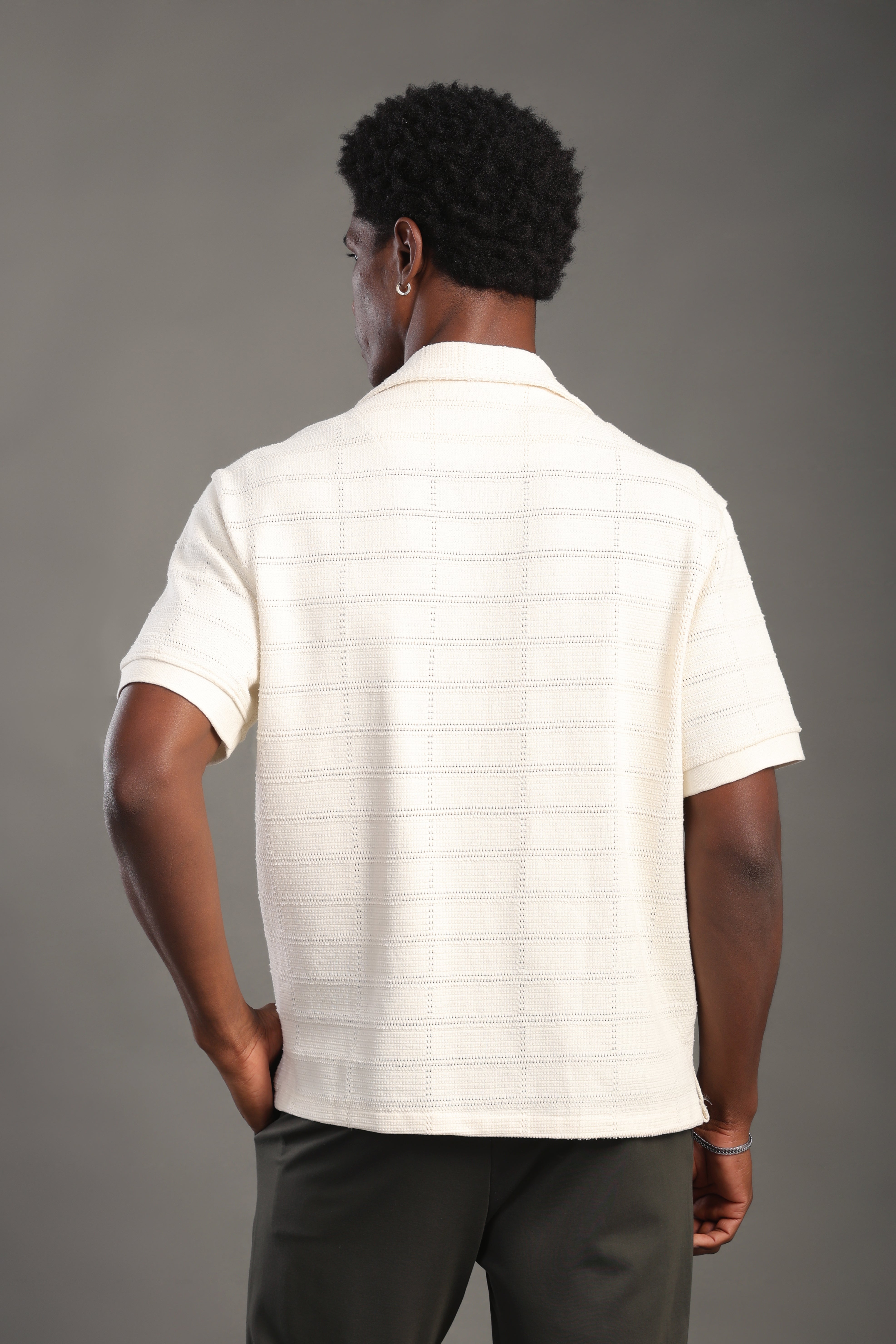 Men's Beige Half Sleeve V Neck Apache Collar Shirt
