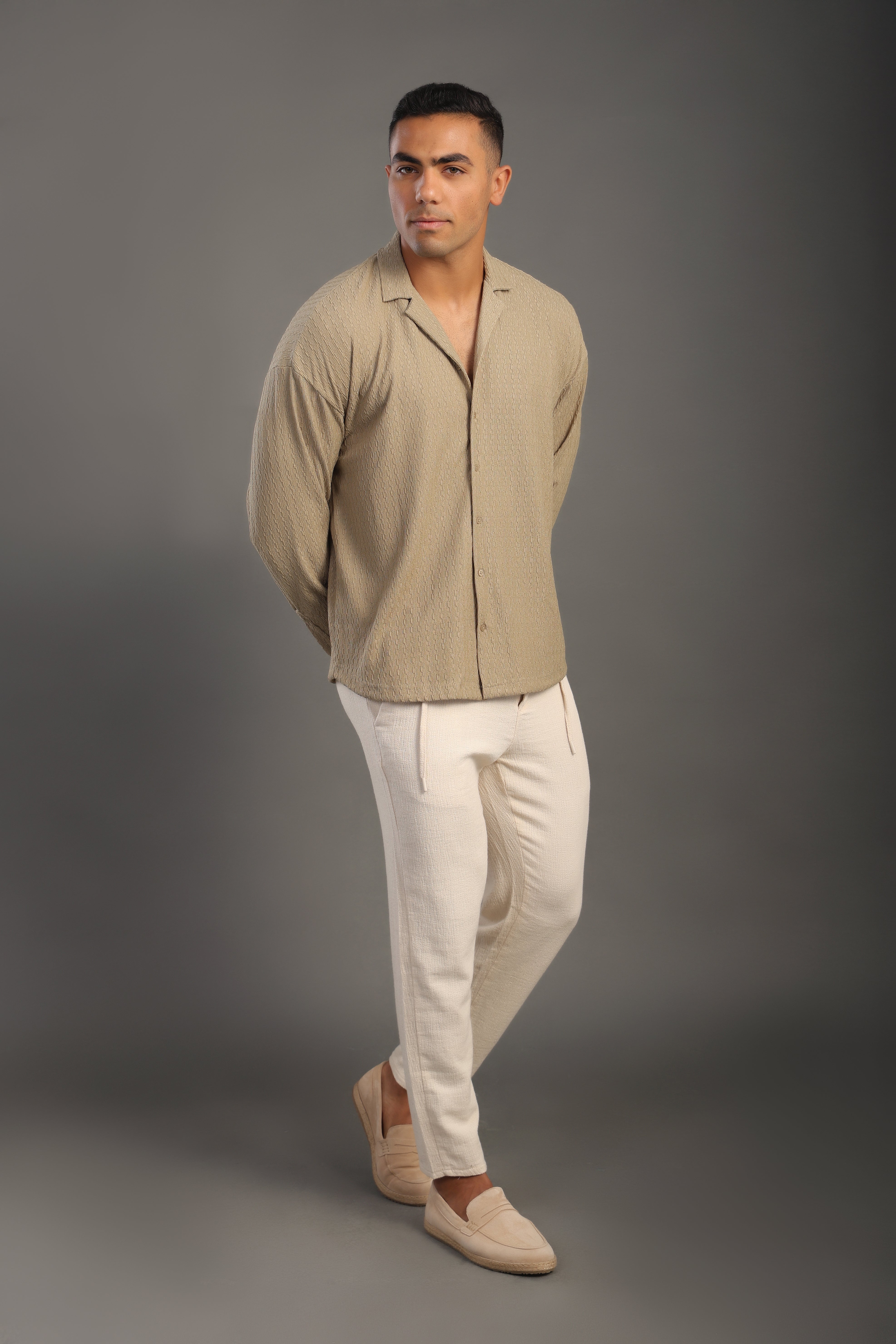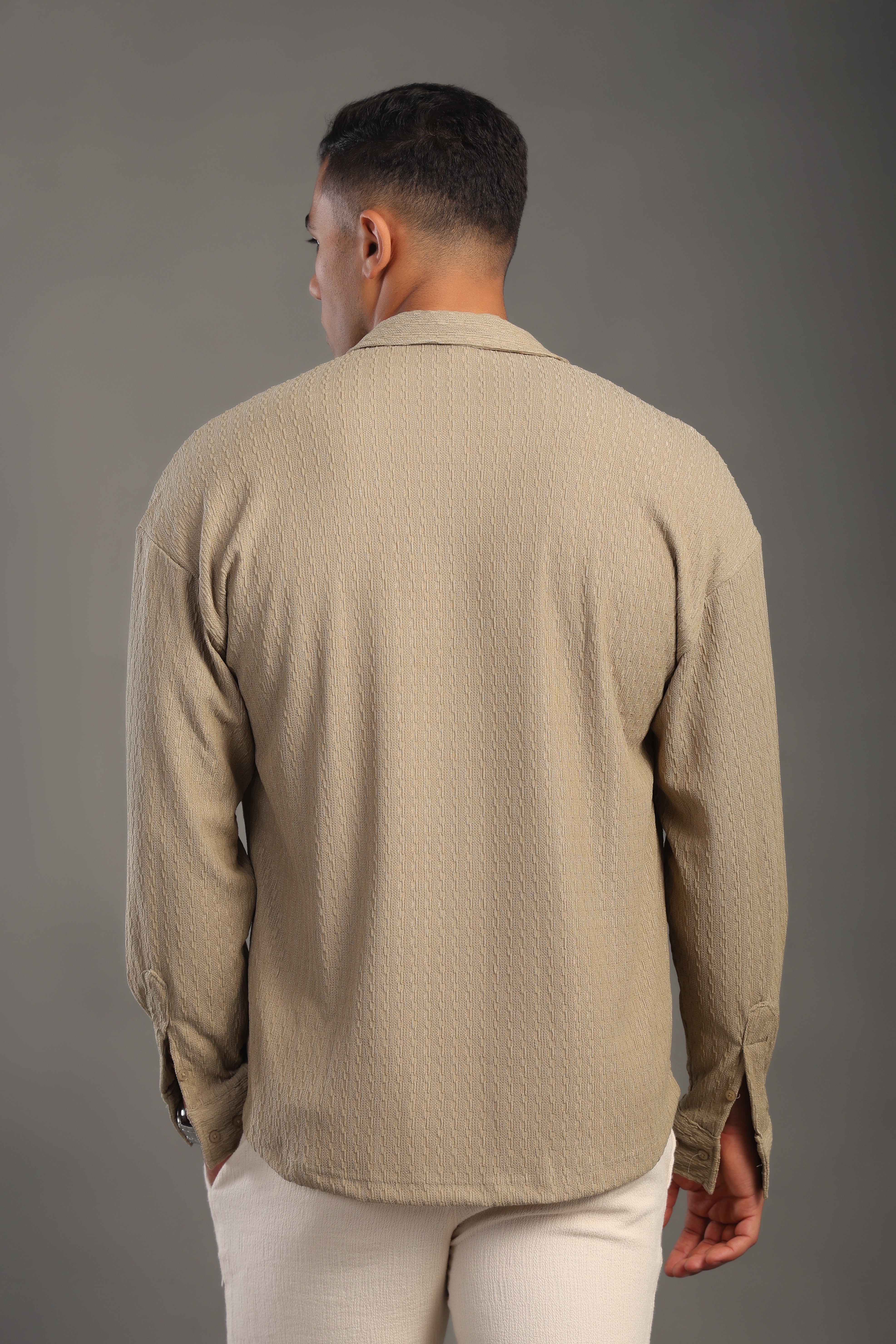 Men's Malibu Beige Long Sleeve Dobby Texture Shirt