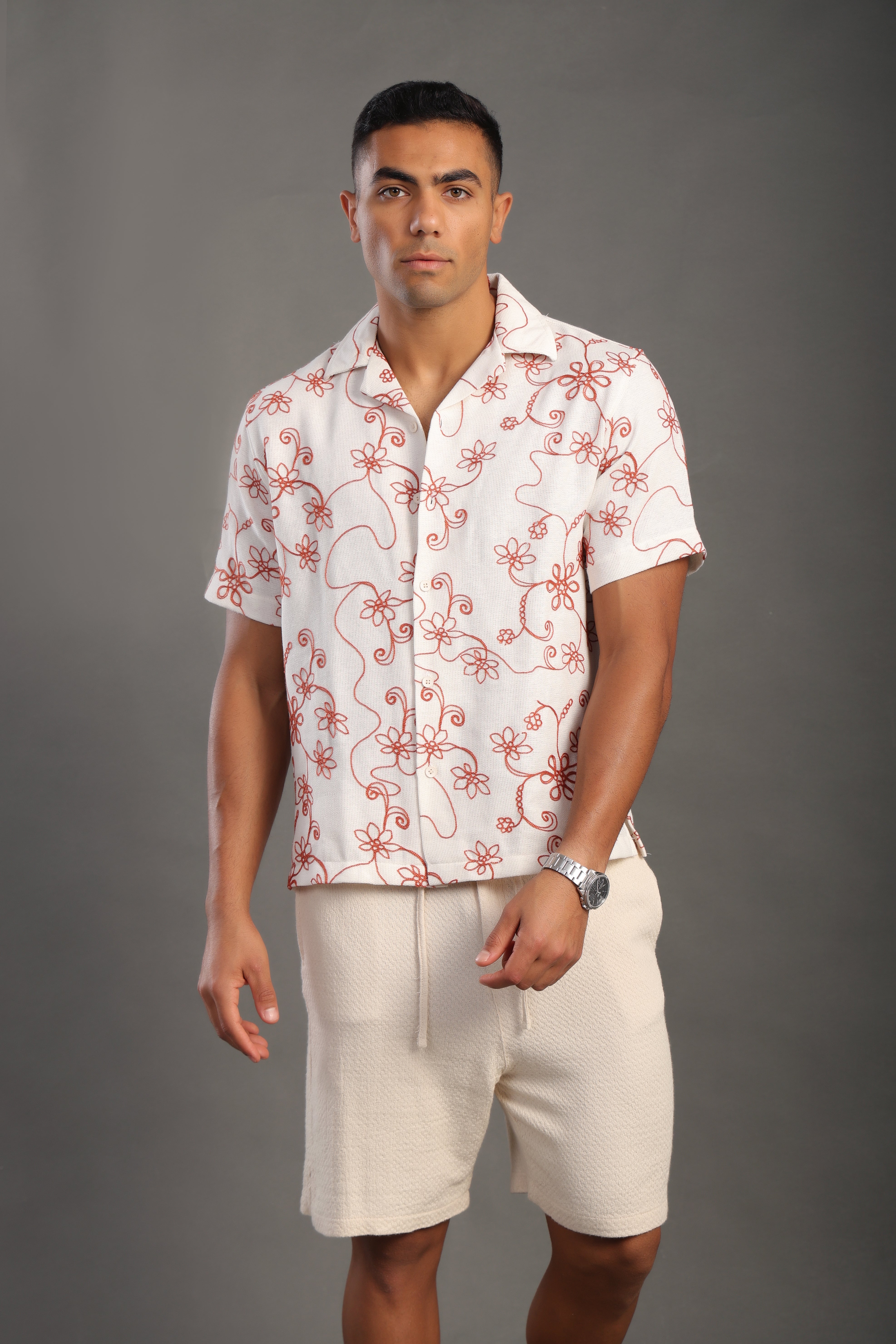Men's Stone Half Sleeve Printed V Neck Collar Shirt Made in Turkey.