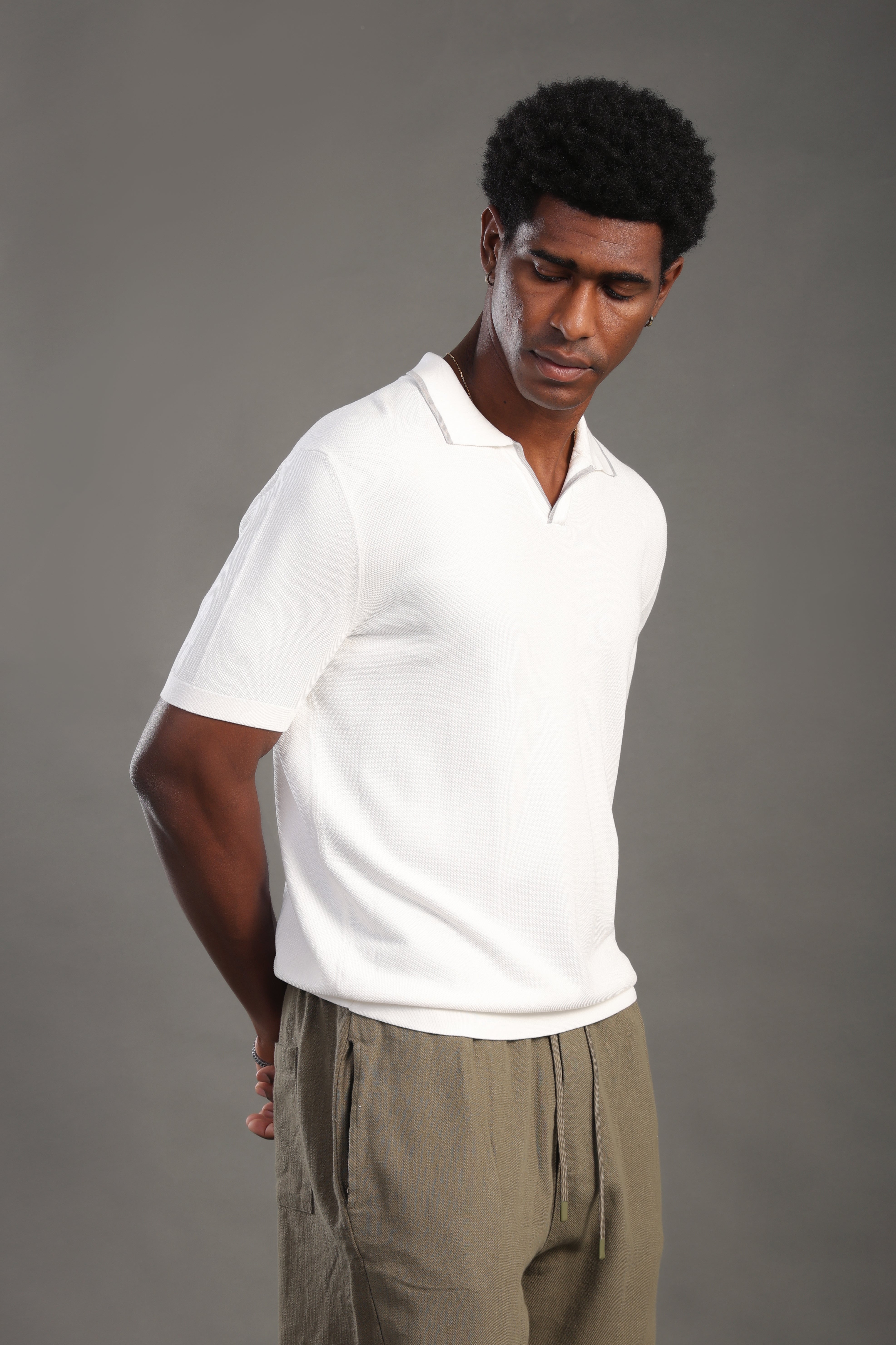 Men's White Plain Polo T-shirt