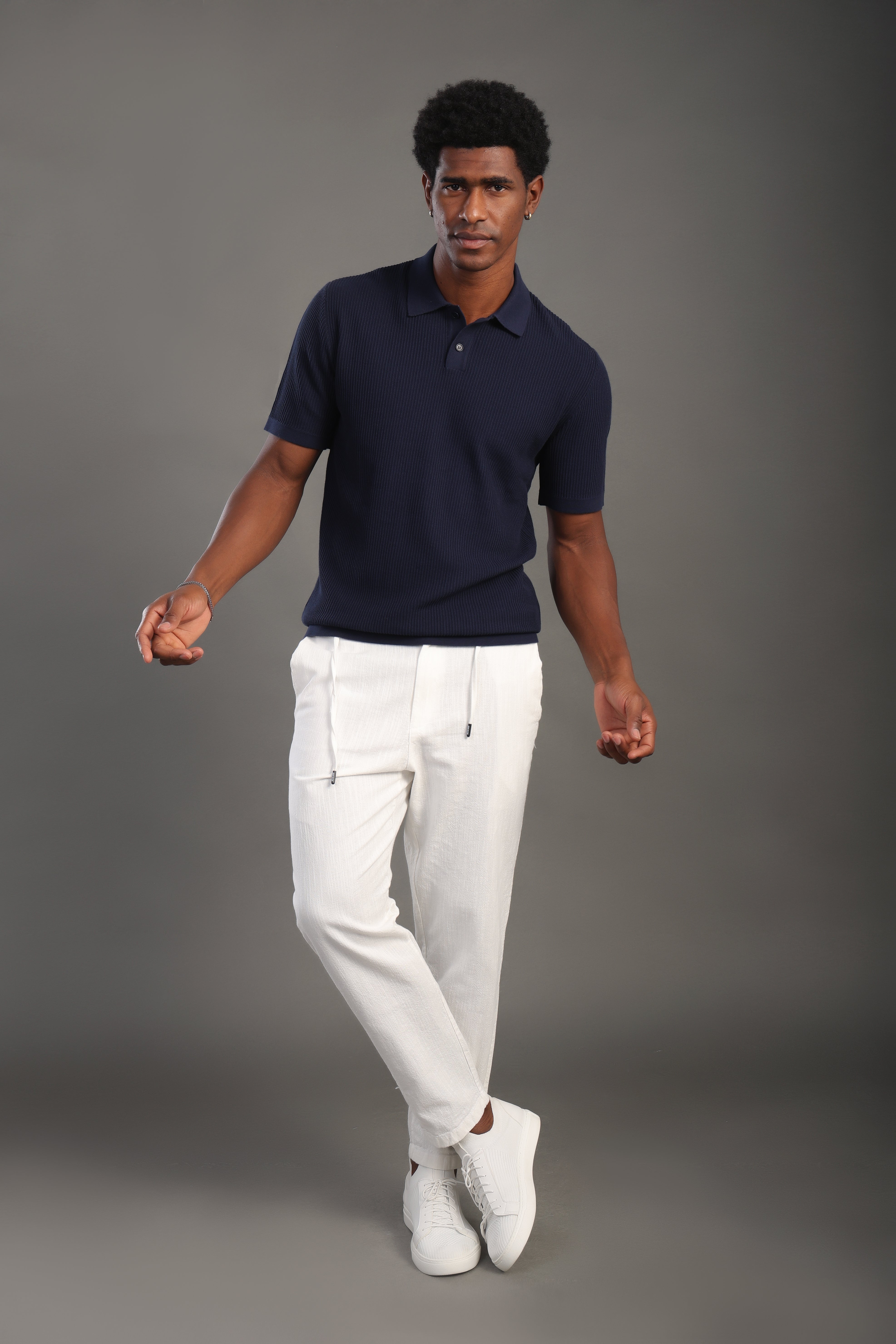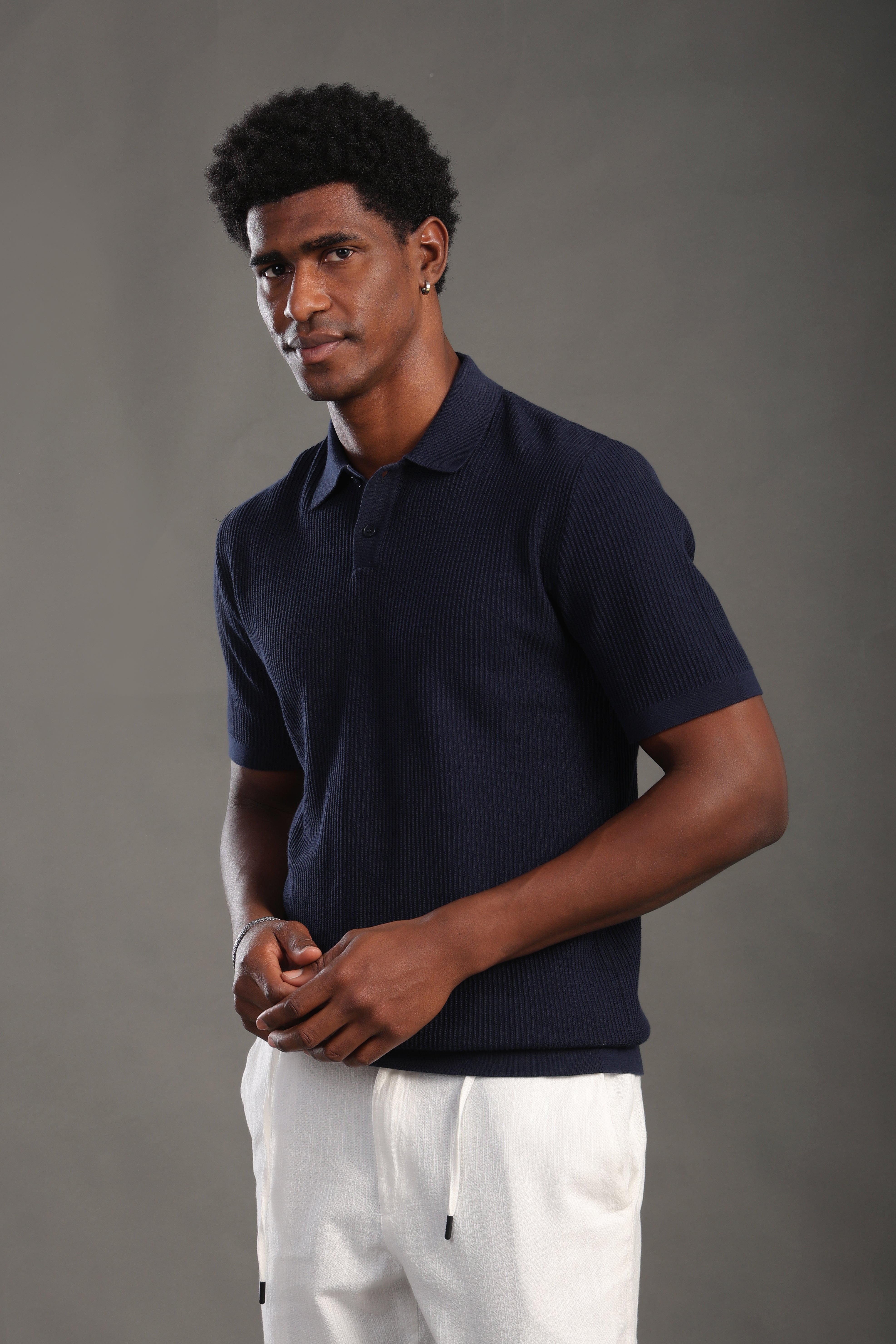 Men's Navyblue Button Plain Polo T-shirt
