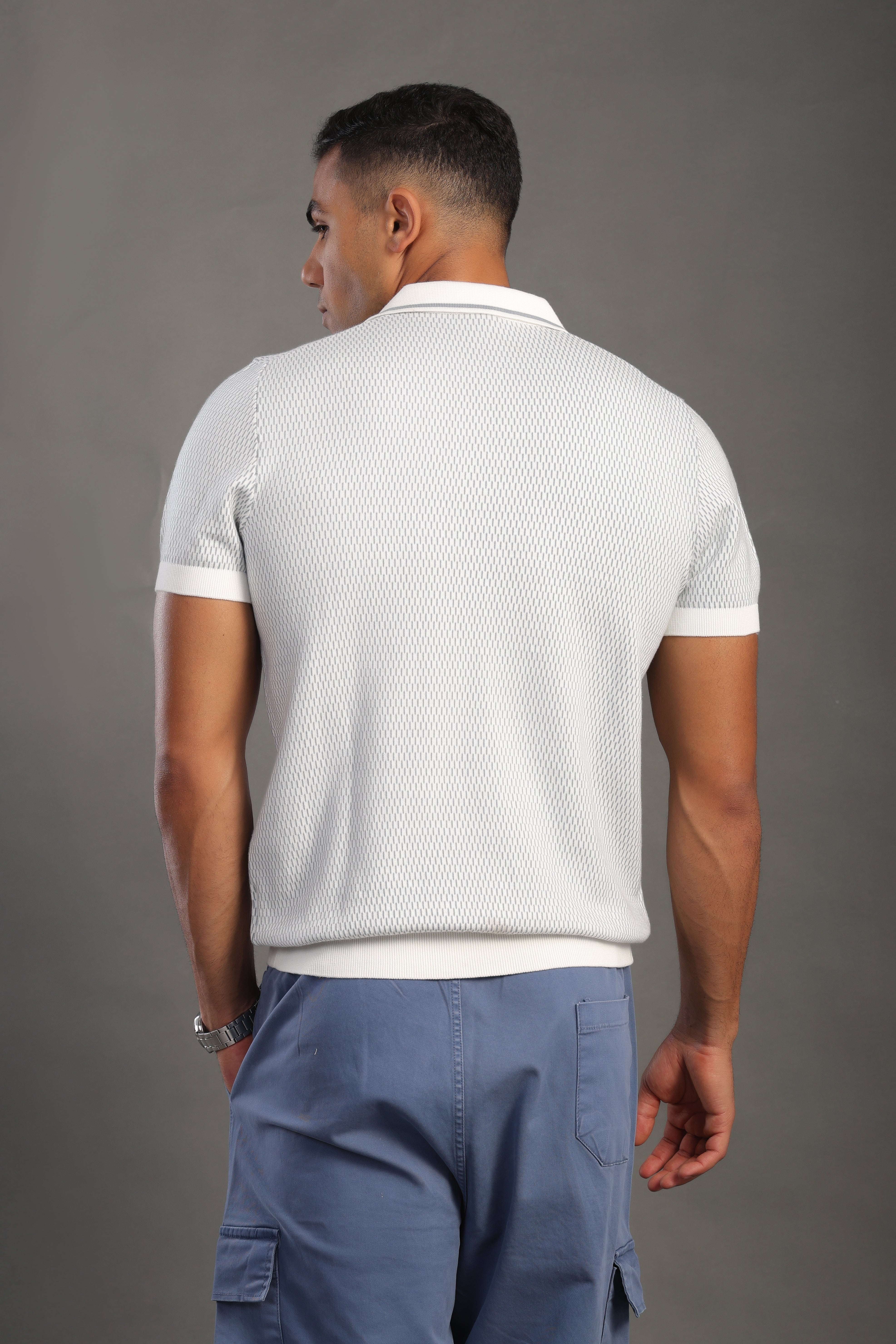 Men's Dotted Gray Zipper Collar T-shirt Made in Turkey.