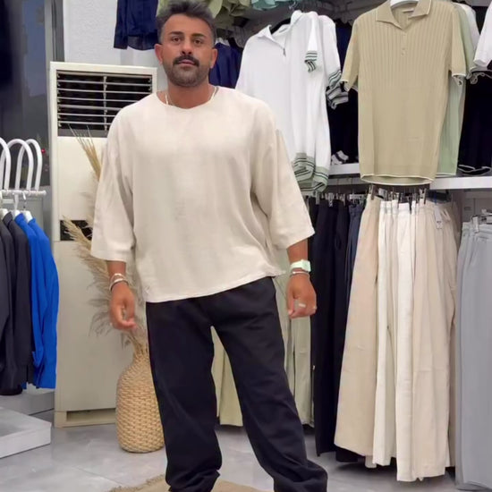 Men's Sand Beige Oversize T-shirt Made in Turkey.