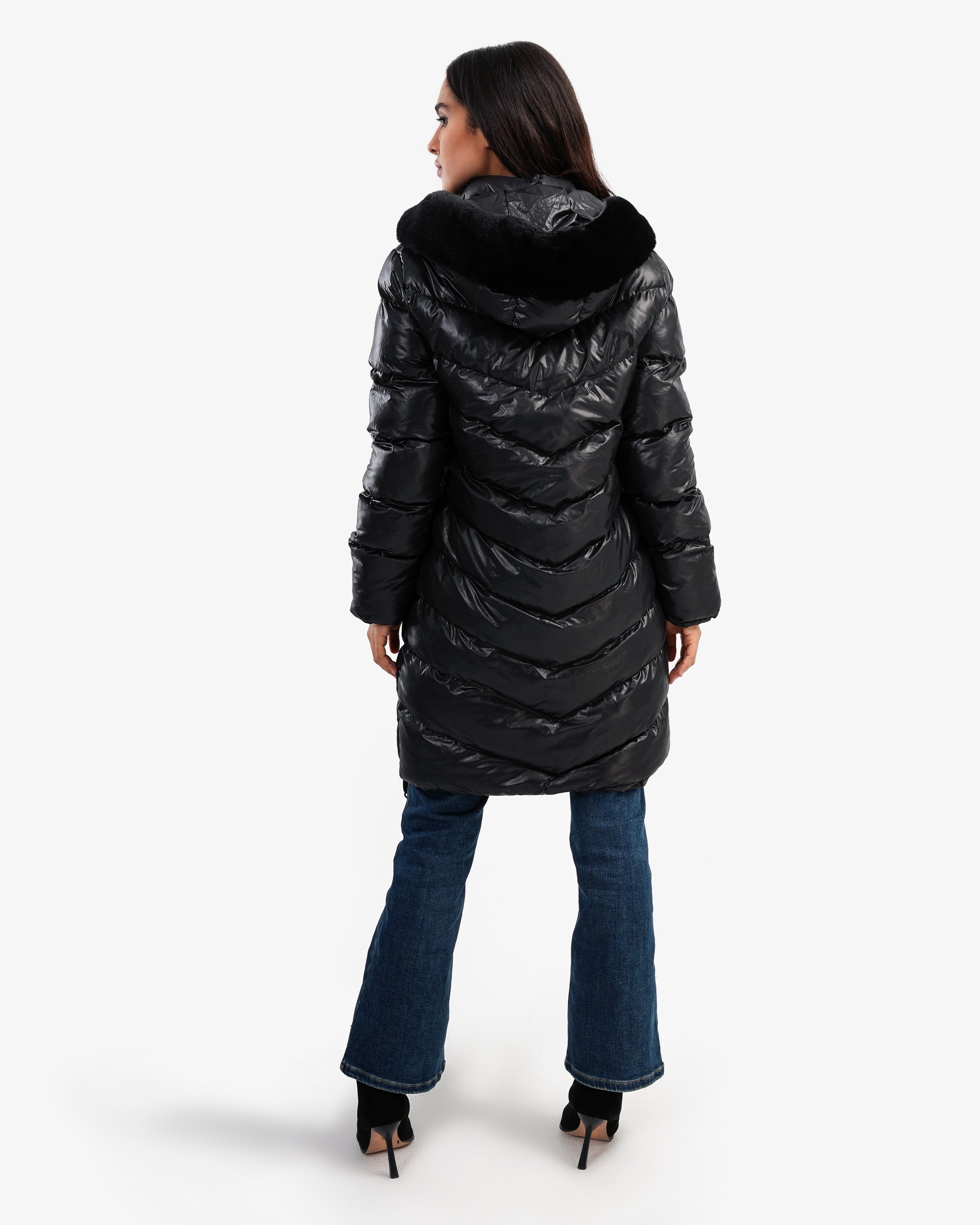 Women's Long Waterproof Puffer Coat In Black
