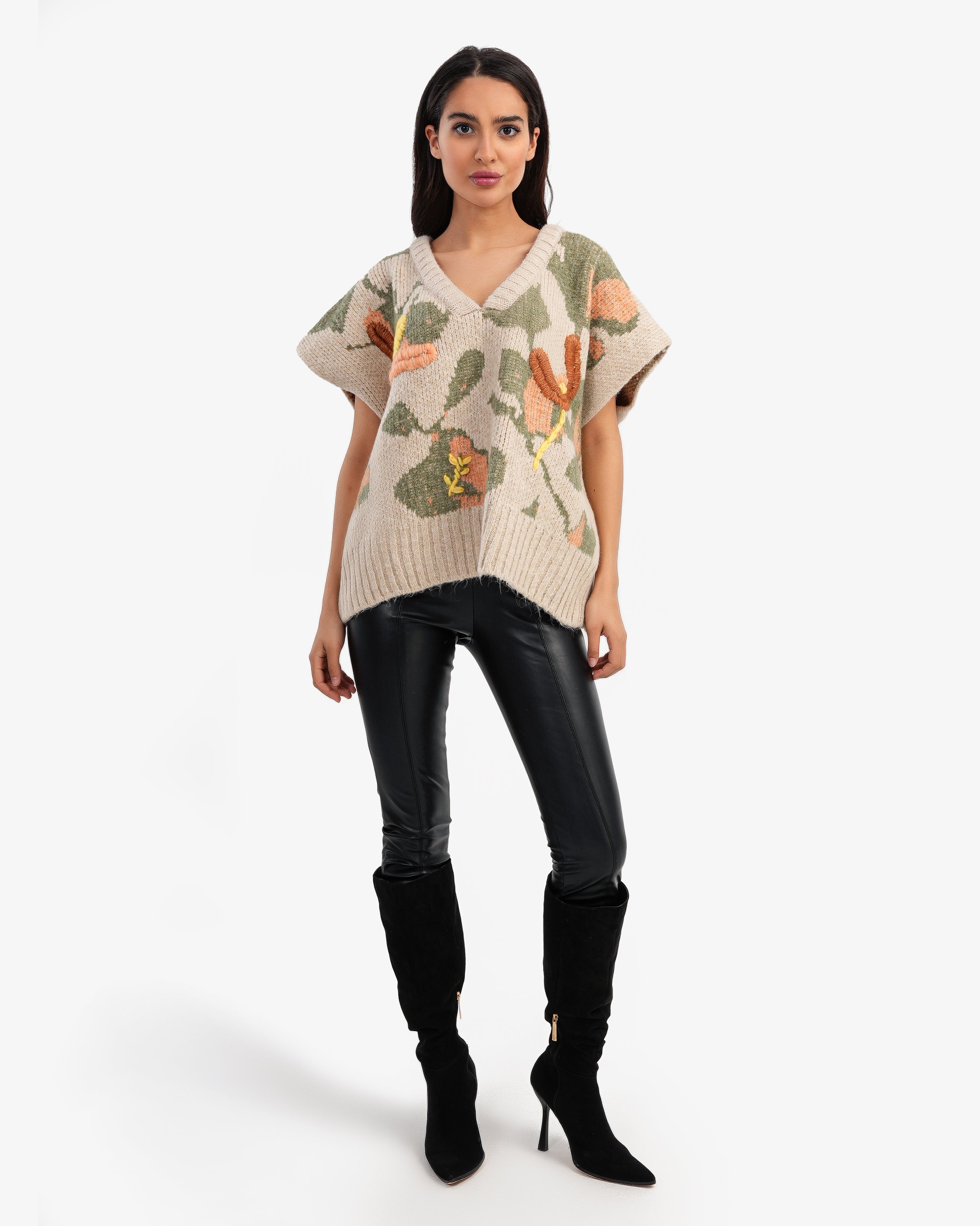 Women's Oversize Colorful V Neck Pullover