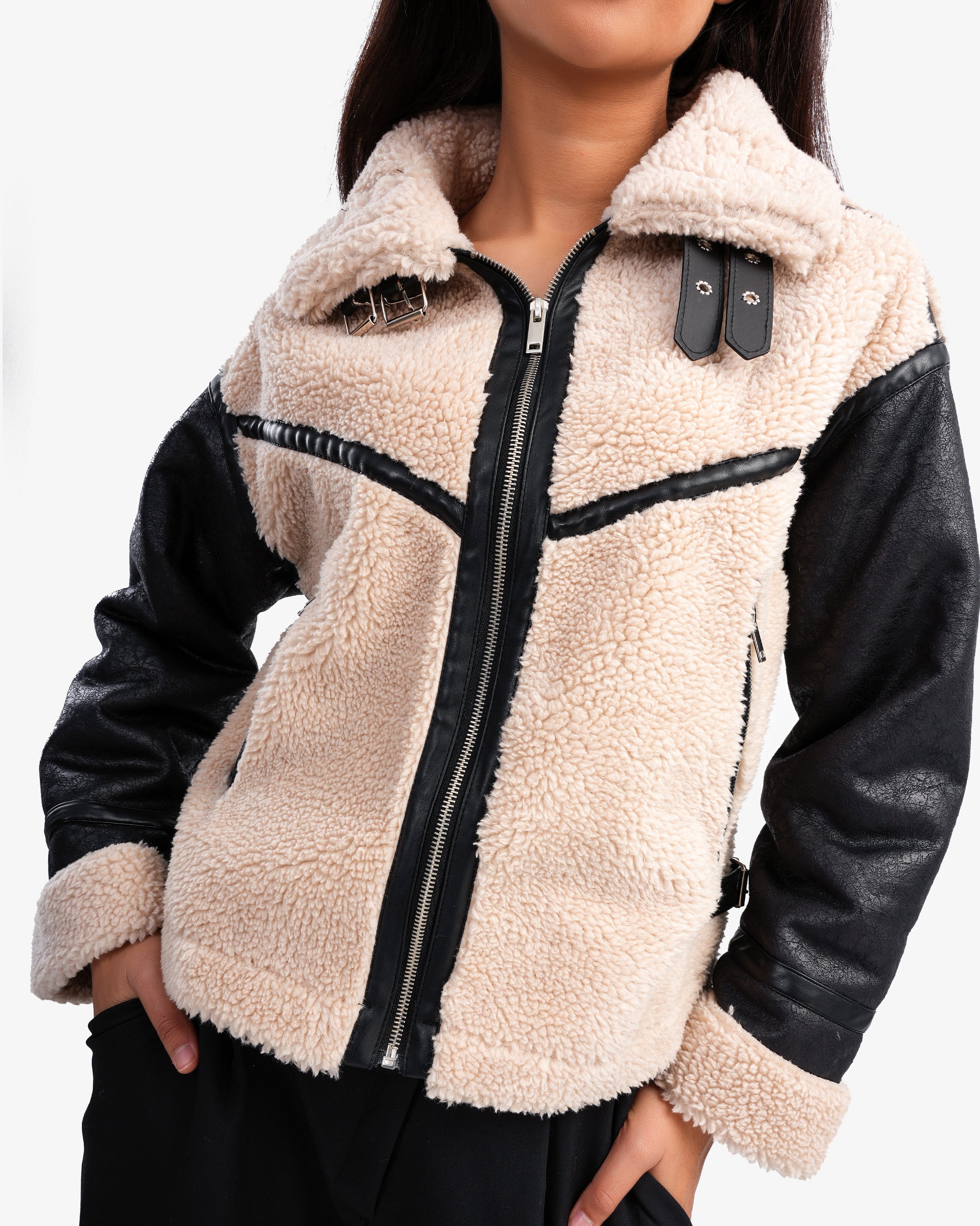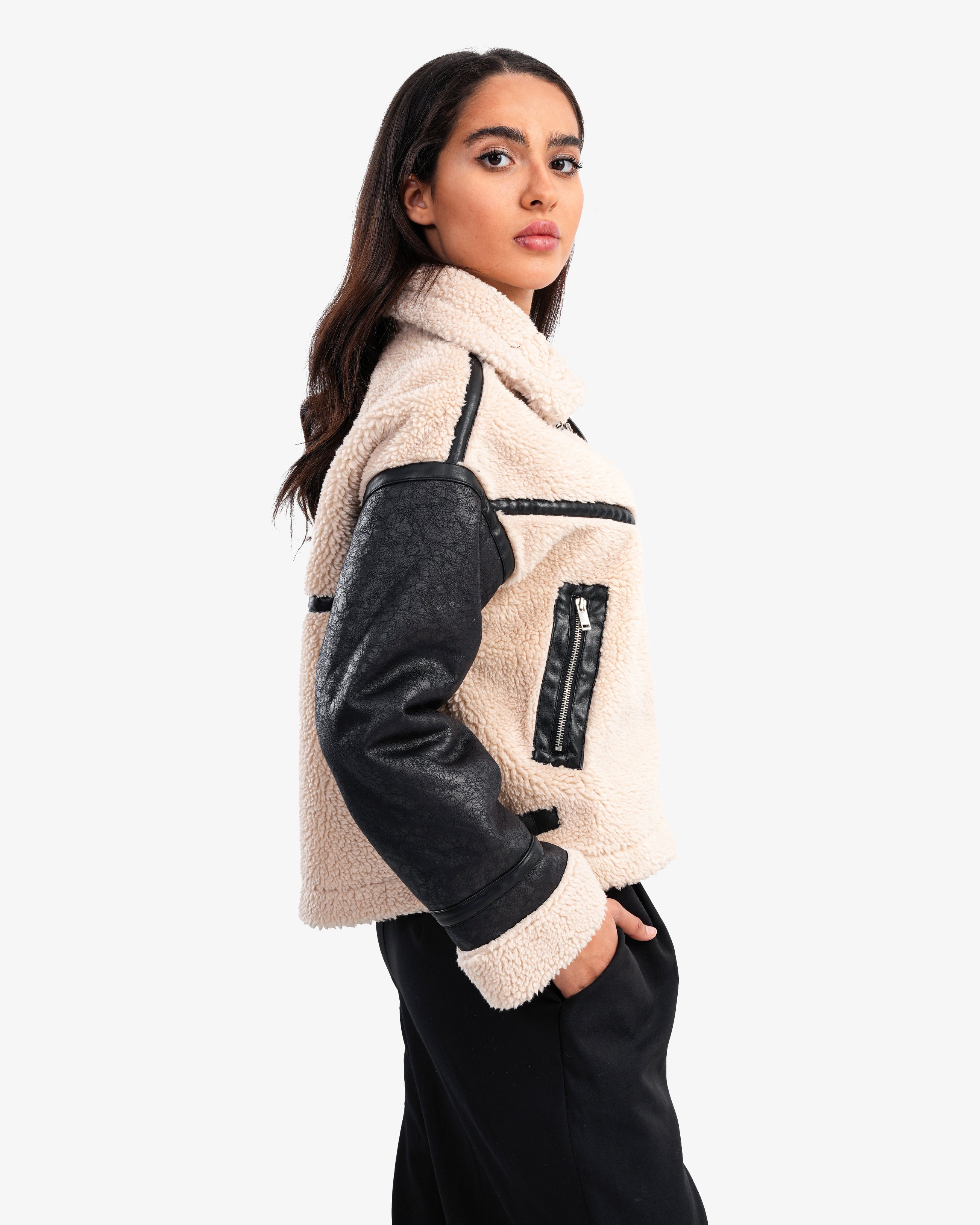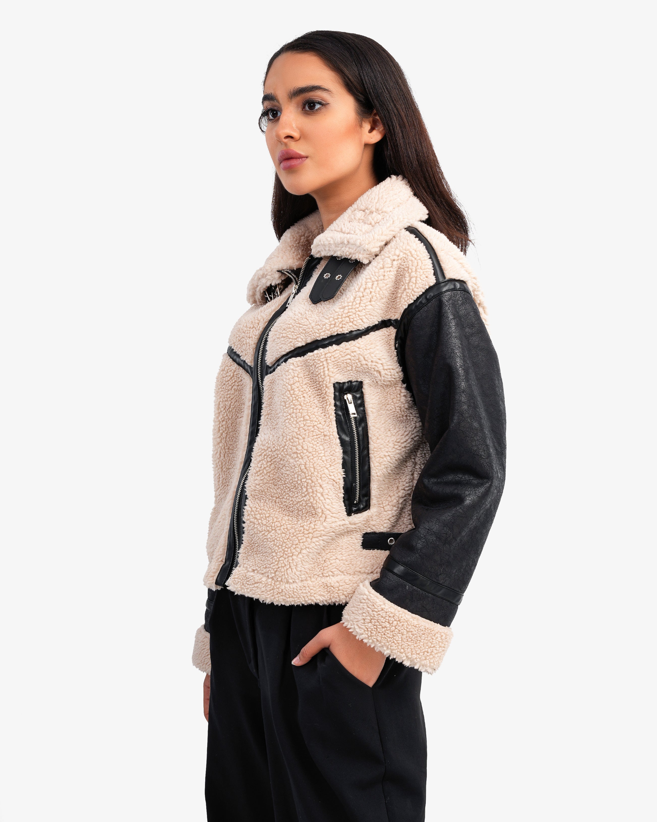 Women's Sleeve Leather Shearling Jacket In Beige