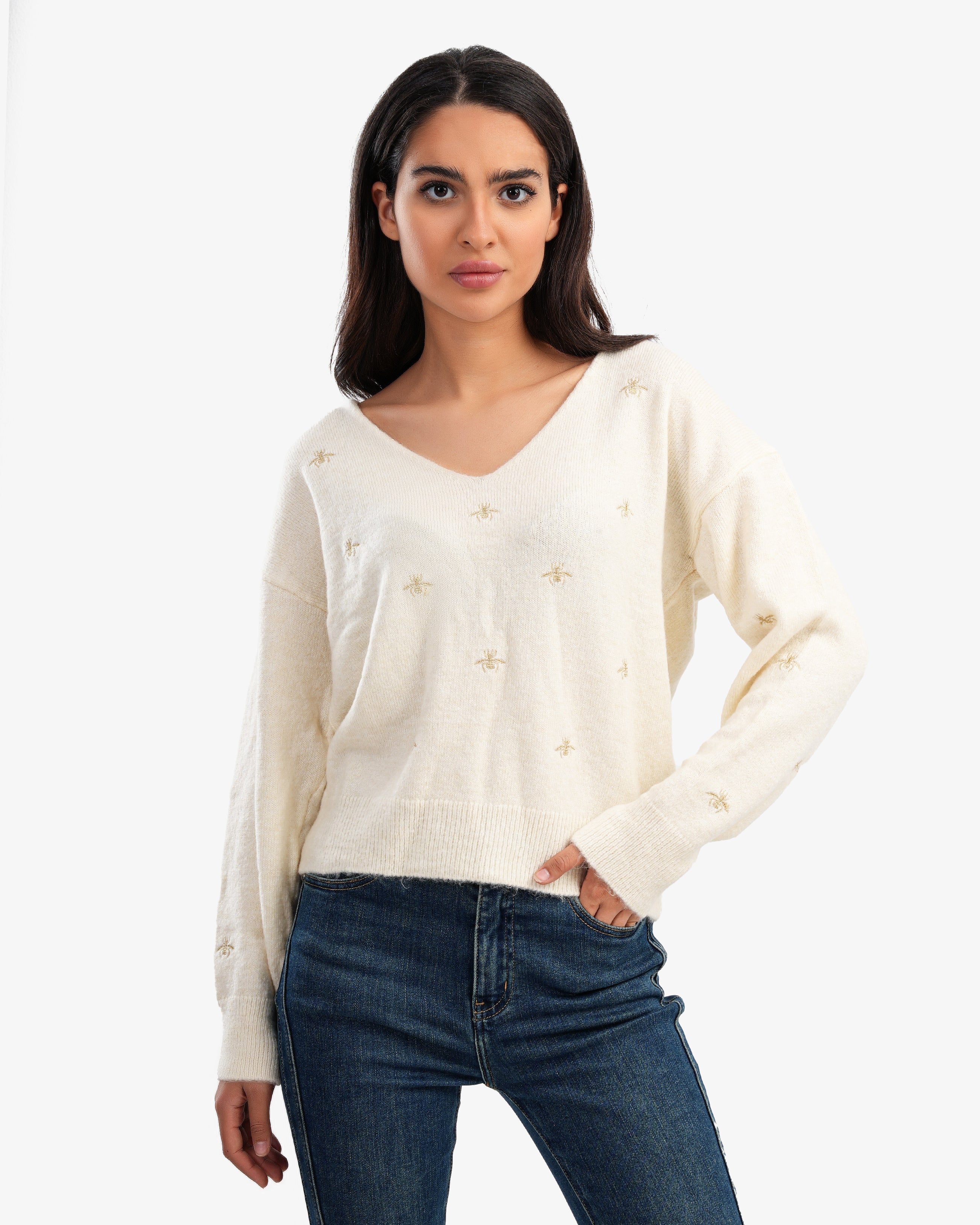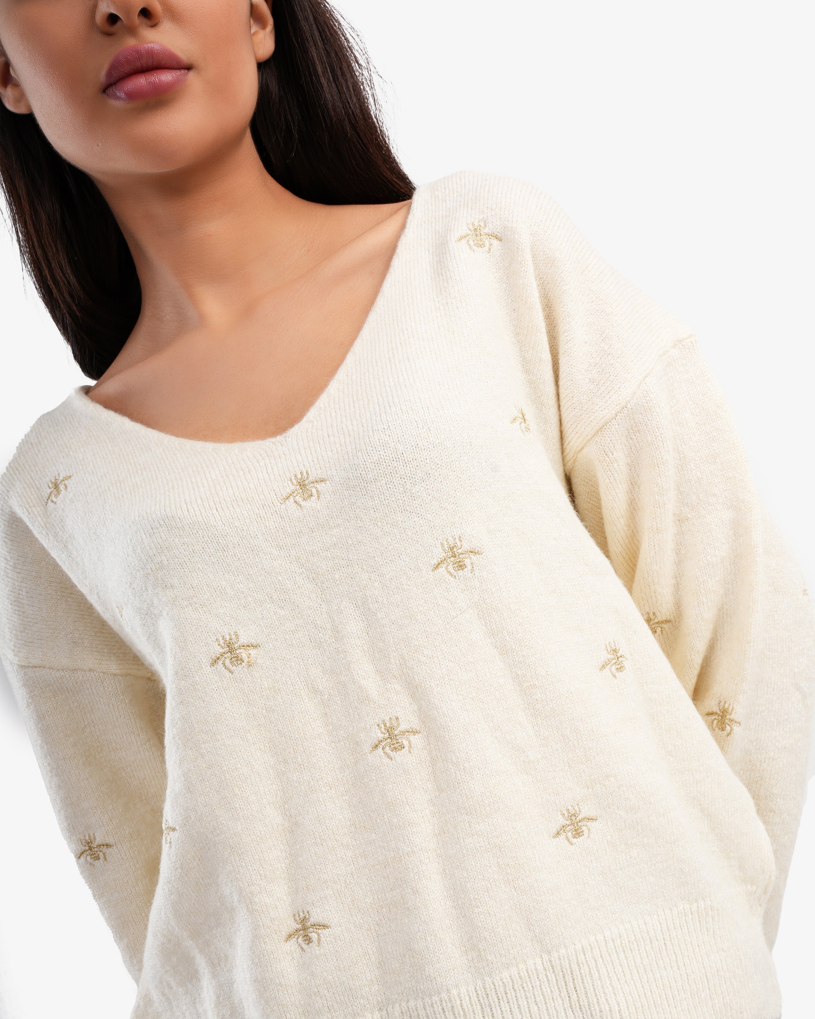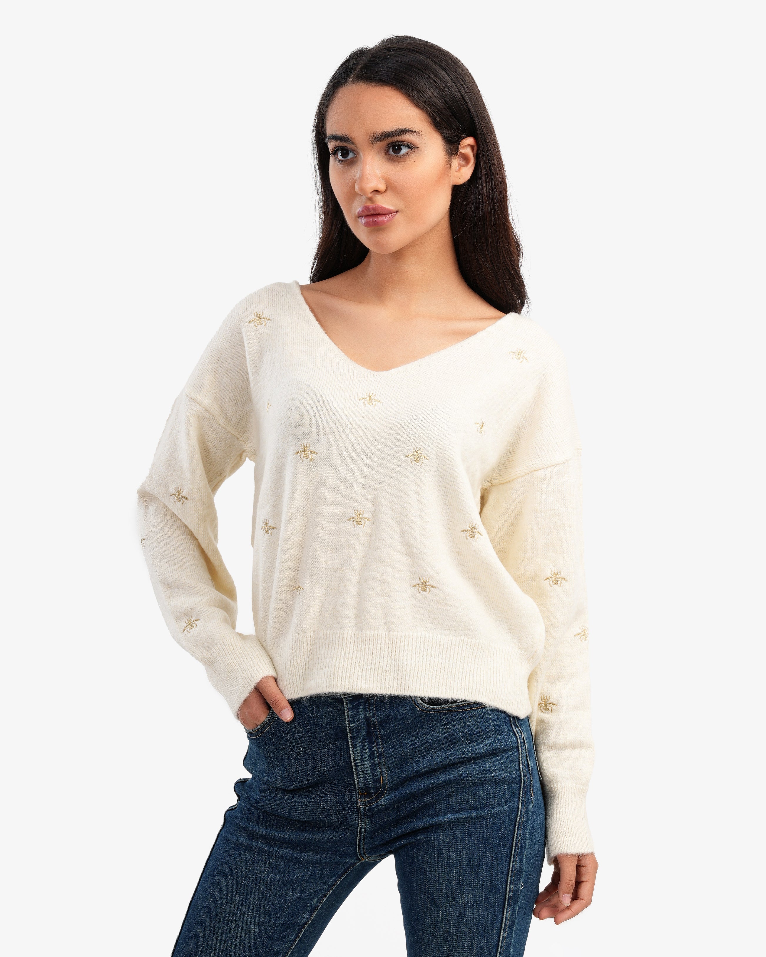 Women's V Neck Pullover In Off White